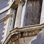 as i slowly worked my way back down, i peaked in on each of the floors. in most cases the dry wall had crumbled apart, which worked to my advantage since it exposed the elevator shafts still containing ornamental iron doors, surrounds, pilasters and so on. i managed to access a few of these formerly walled-in elevator doors to discover and carefully extract remarkable cast iron cartouches – with the ywca monogram – from the badly corroded doors. the risk was decidedly worthwhile after discovering the intact ornamental iron stairways and original open-air elevators, and especially with the removal of the cartouches, a complete door and some of the spindles. not a single person would have known that these ornamental iron remnants existed, hidden as they were when the hotel was converted during the depression. that discovery was highly rewarding, especially to the historians who performed a methodical and painstakingly detailed analysis of the facade.