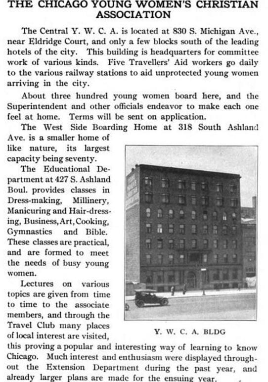 the seven-story combination red brick and terra cotta hotel located at 830 south michigan avenue it was designed by chicago architect john m. van osdel ii, nephew of prominent chicago architect john mills van osdel, with construction of the property on spread foundations completed in 1895. the late 19th century hotel was one of the oldest ywca buildings left standing in the country, and was the first to be built in the city of chicago. the ywca was pivotal in housing newly arrived working women following the 1893-1894 “columbian exposition” or chicago world’s fair.