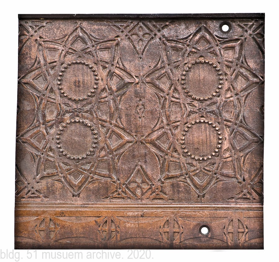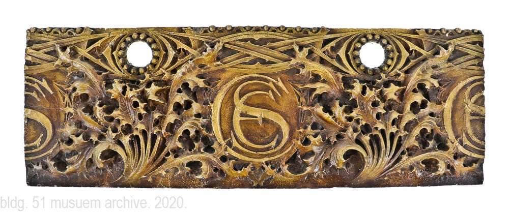significance, description and provenance will be assigned to the ornament (listed below) when time permits. like other collections held in the bldg. 51 museum, the primary objective is to continually seek out and acquire additional artifacts, images and ornament (when opportunities arise) to establish a more well-rounded and comprehensive narrative that sheds light on the lifecycle of buildings that have either been destroyed or remain standing, but bearing a heavily compromised identity caused by short-sighted and often irreversible alterations.