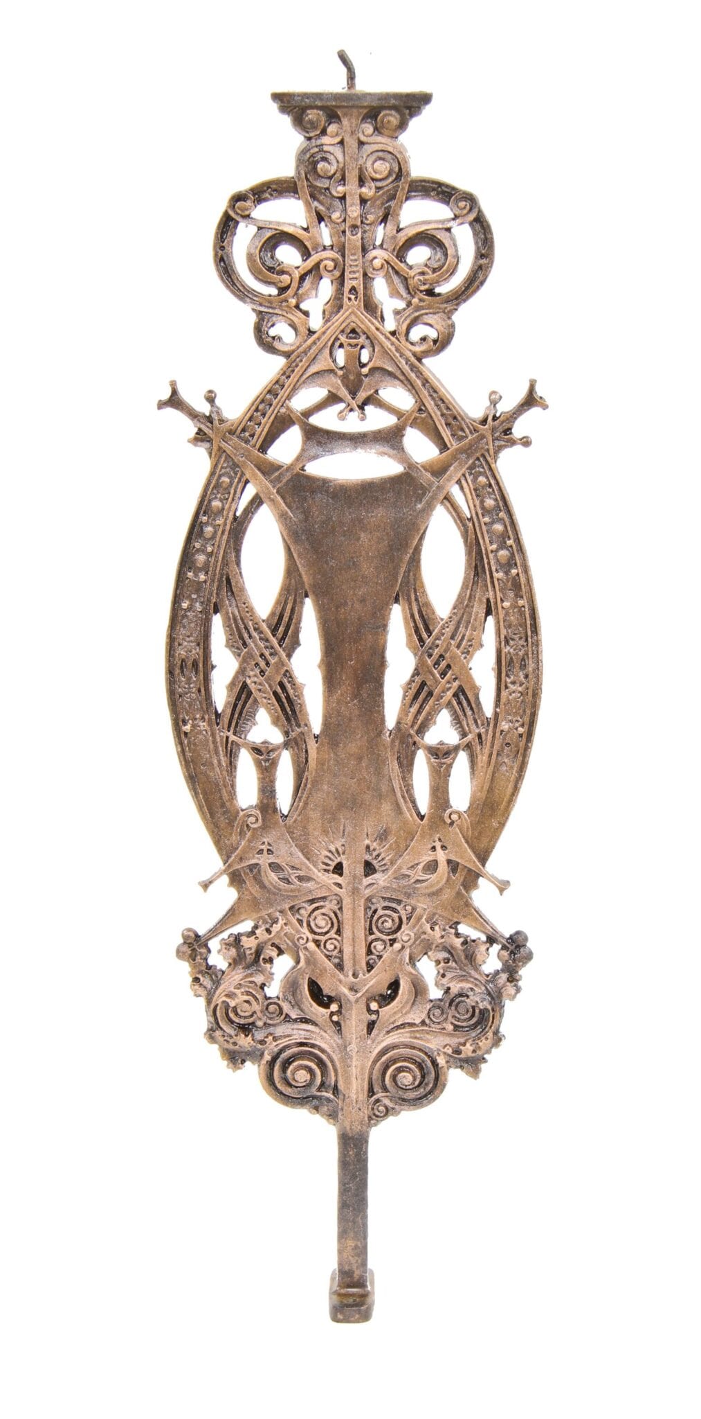 especially near the base, ornamental patterns reflect the span and connection of underlying steel members. as the components rise, a rigid pattern is followed, story upon story until the cornice where the pattern explodes into an umbrageous tangle of leaves and vines, encapsulating the windows and reaching outward over the street below. the ornament tells the same story as the theory which created it: bottom, middle, top- light steel skeleton within.