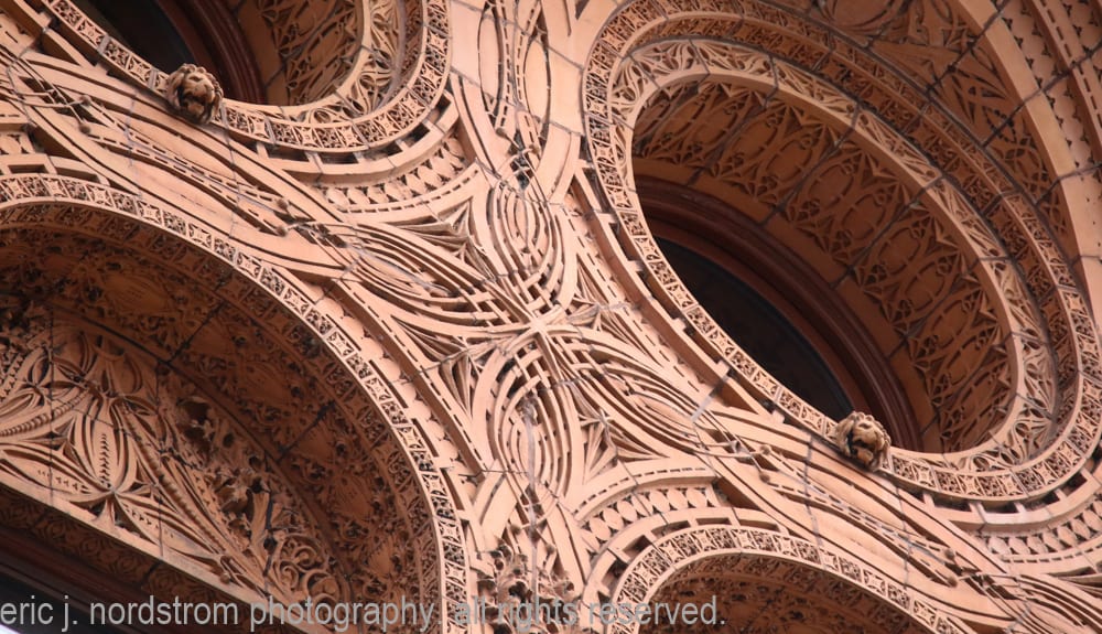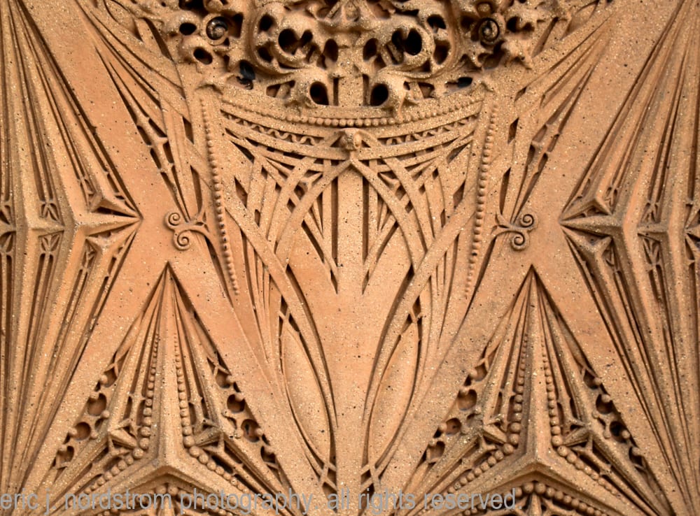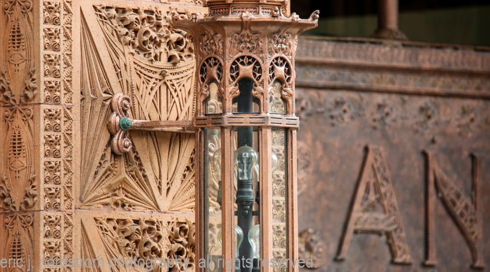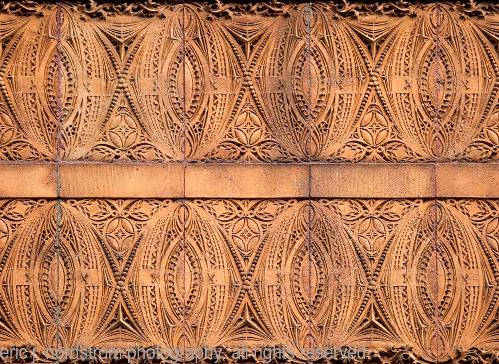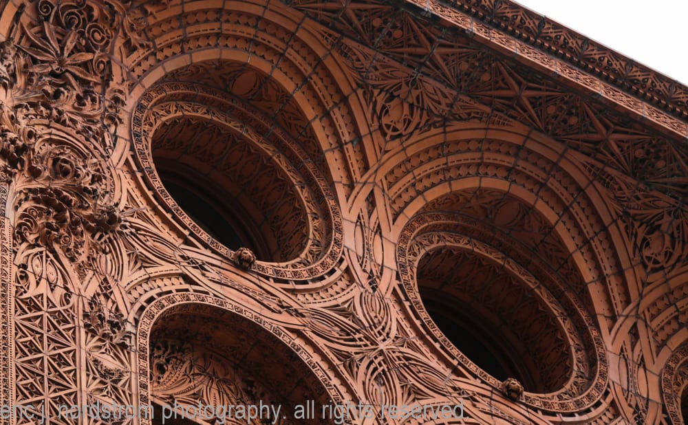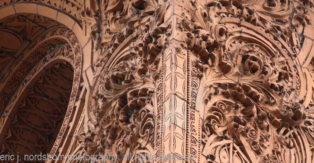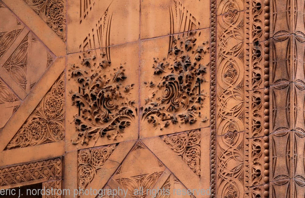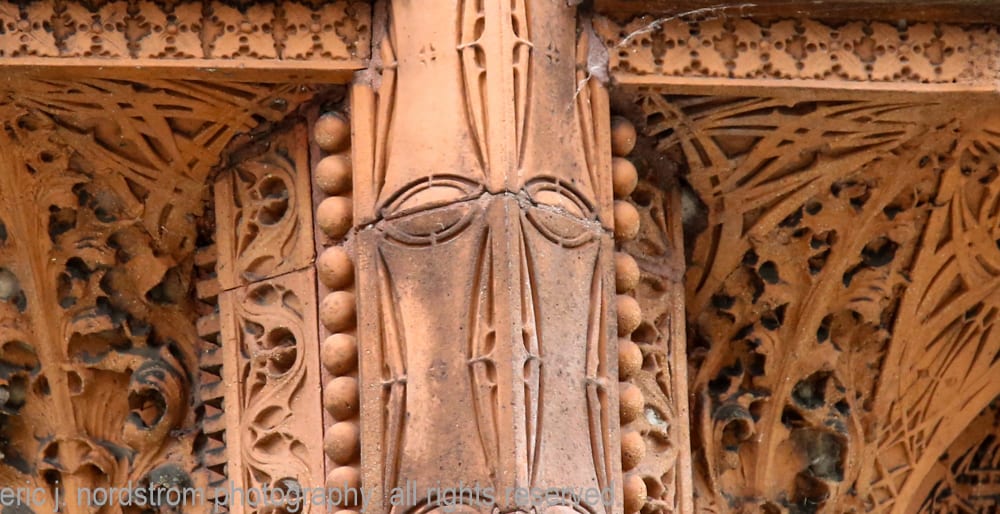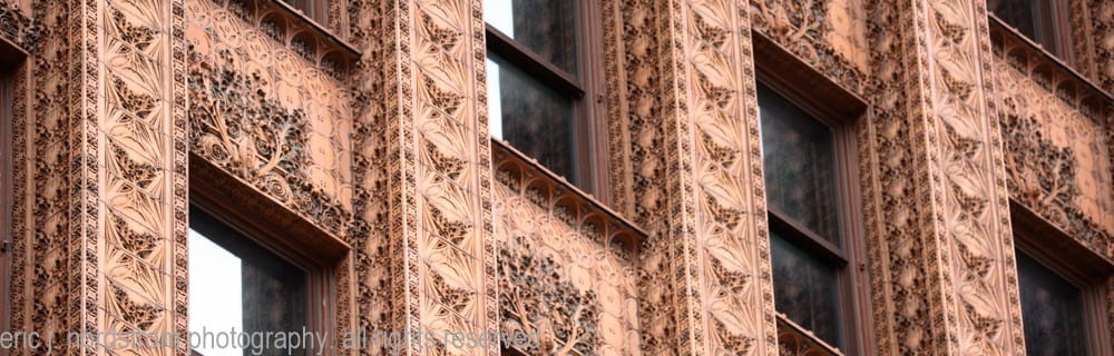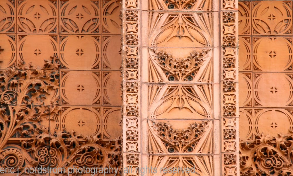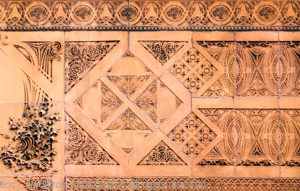 nearly a year later, i forced myself to devote a single afternoon to edit and post images of the building’s exterior ornament taken during that visit. the collection of images focus on the ornament’s plasticity in great detail. the terra cotta ornament was designed by louis h. sullivan and executed in 1896 by chicago-based northwestern terra cotta works. kristian schneider modeled the ornament under the guidance of sullivan and elmslie.