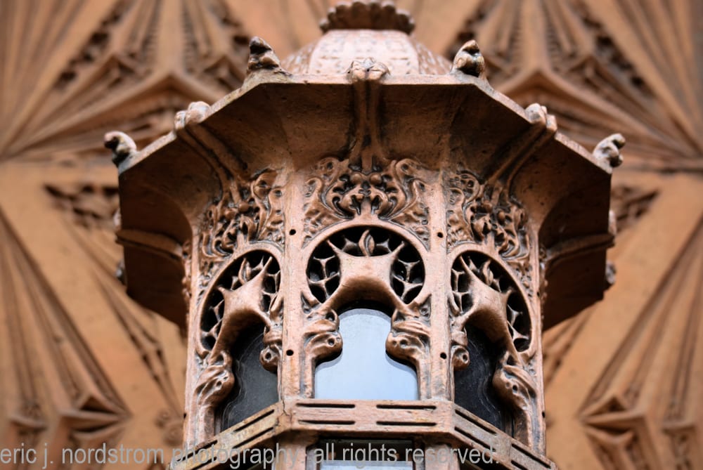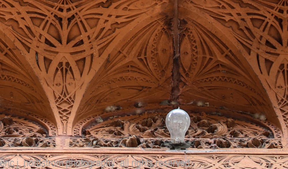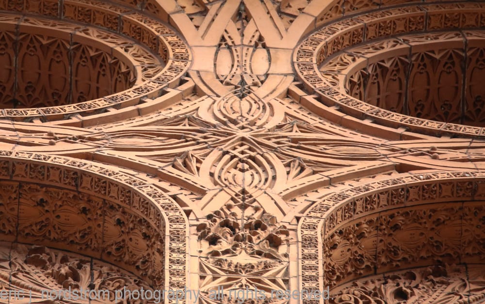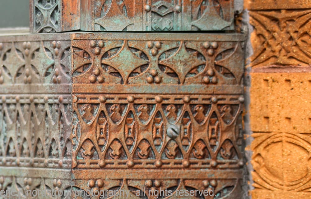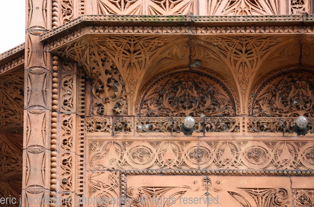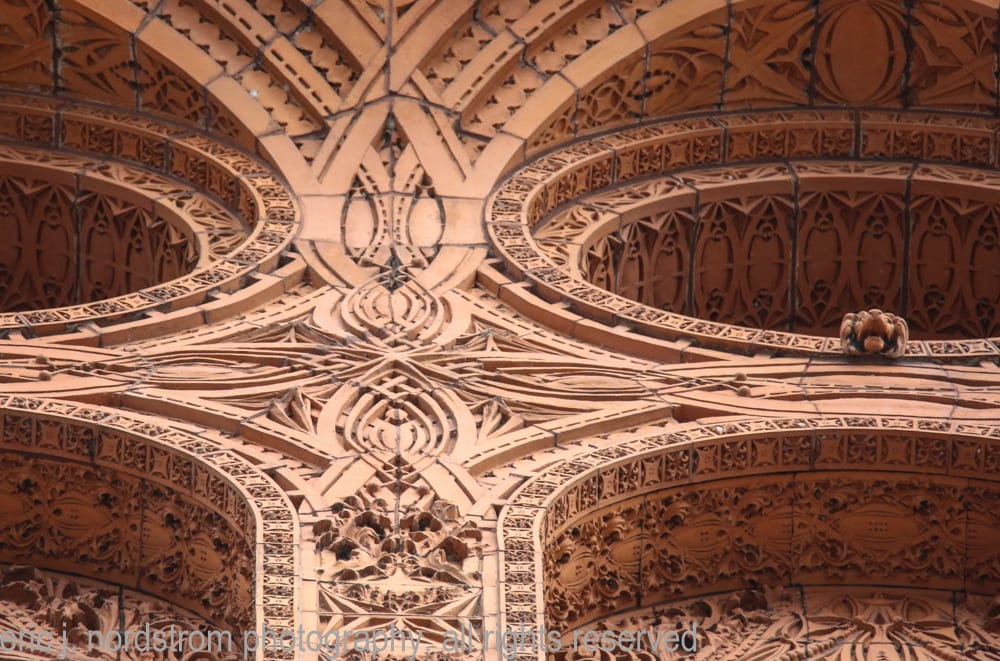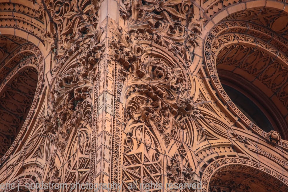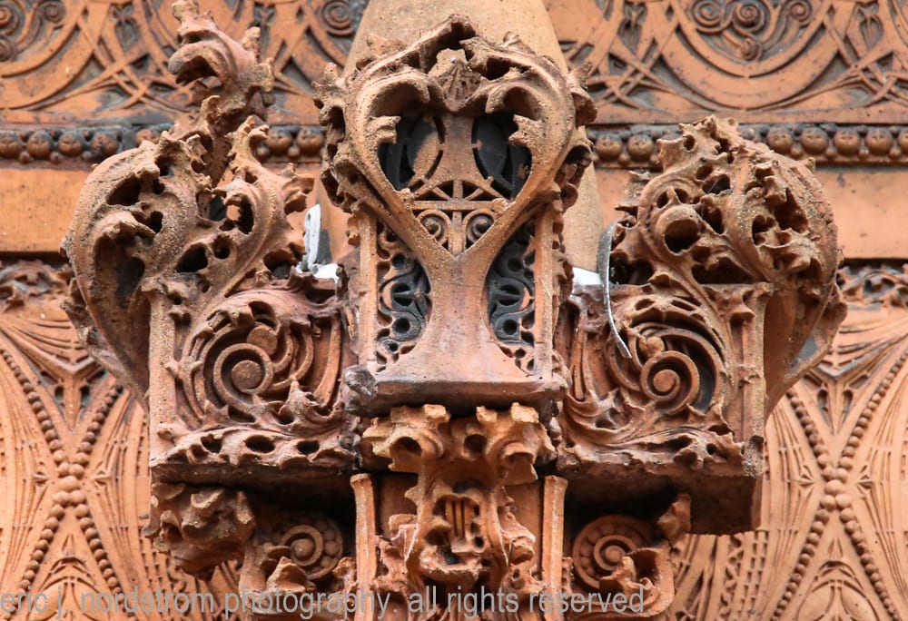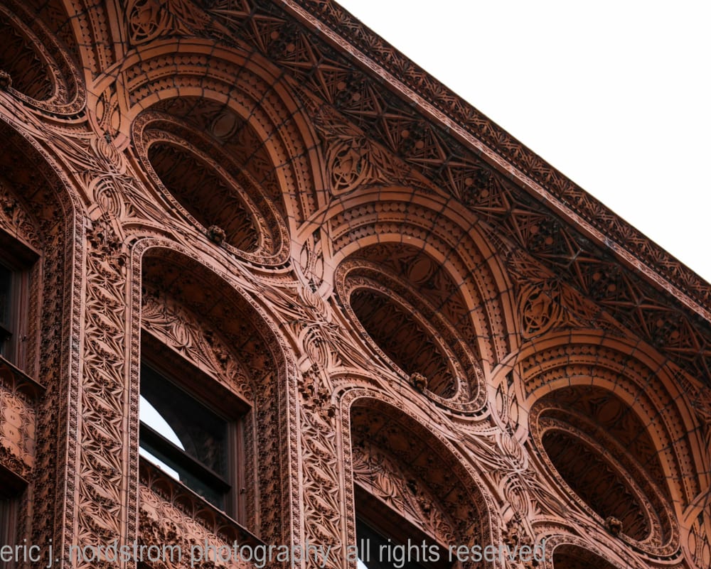 nearly a year later, i forced myself to devote a single afternoon to edit and post images of the building’s exterior ornament taken during that visit. the collection of images focus on the ornament’s plasticity in great detail. the terra cotta ornament was designed by louis h. sullivan and executed in 1896 by chicago-based northwestern terra cotta works. kristian schneider modeled the ornament under the guidance of sullivan and elmslie.