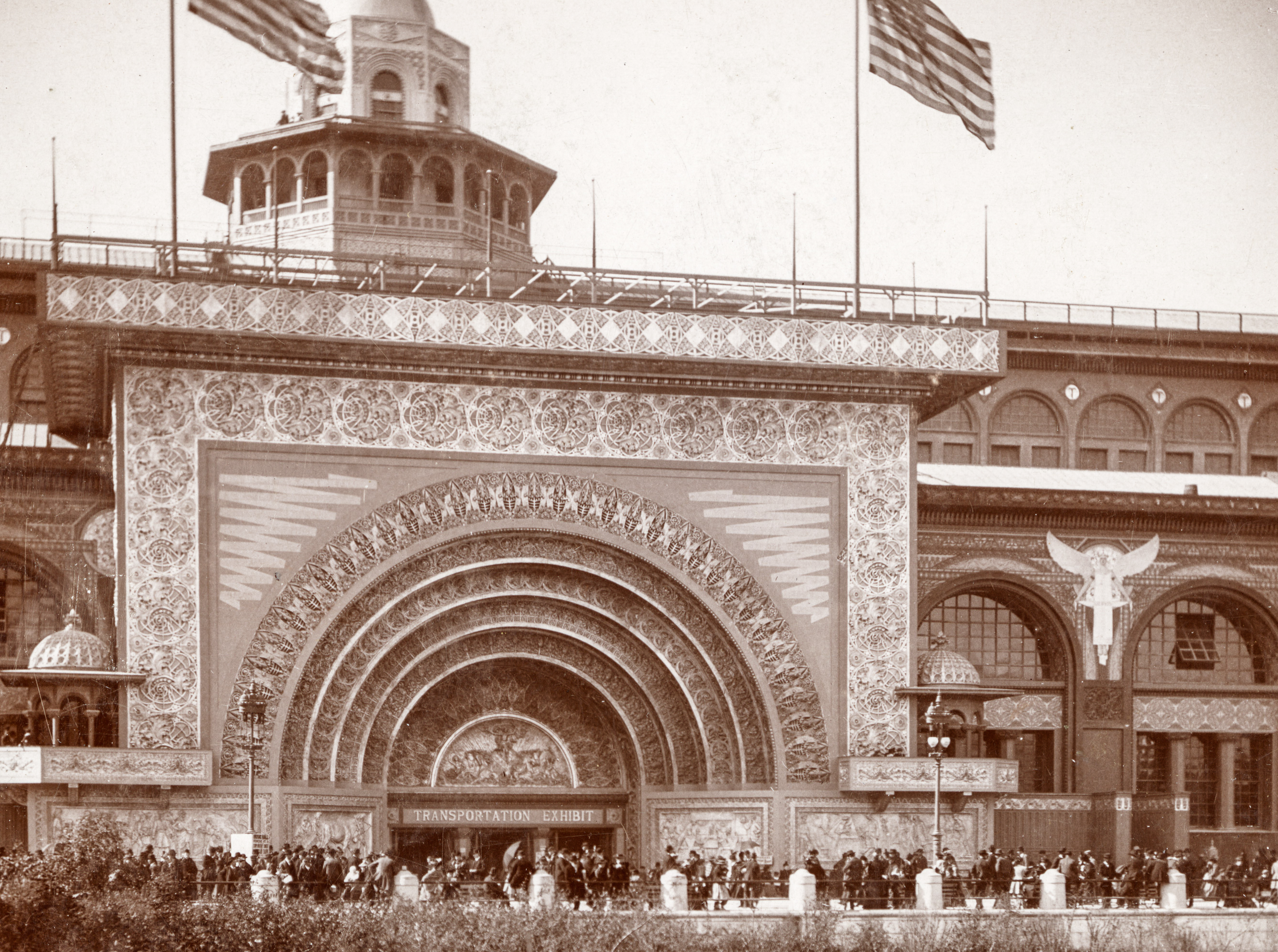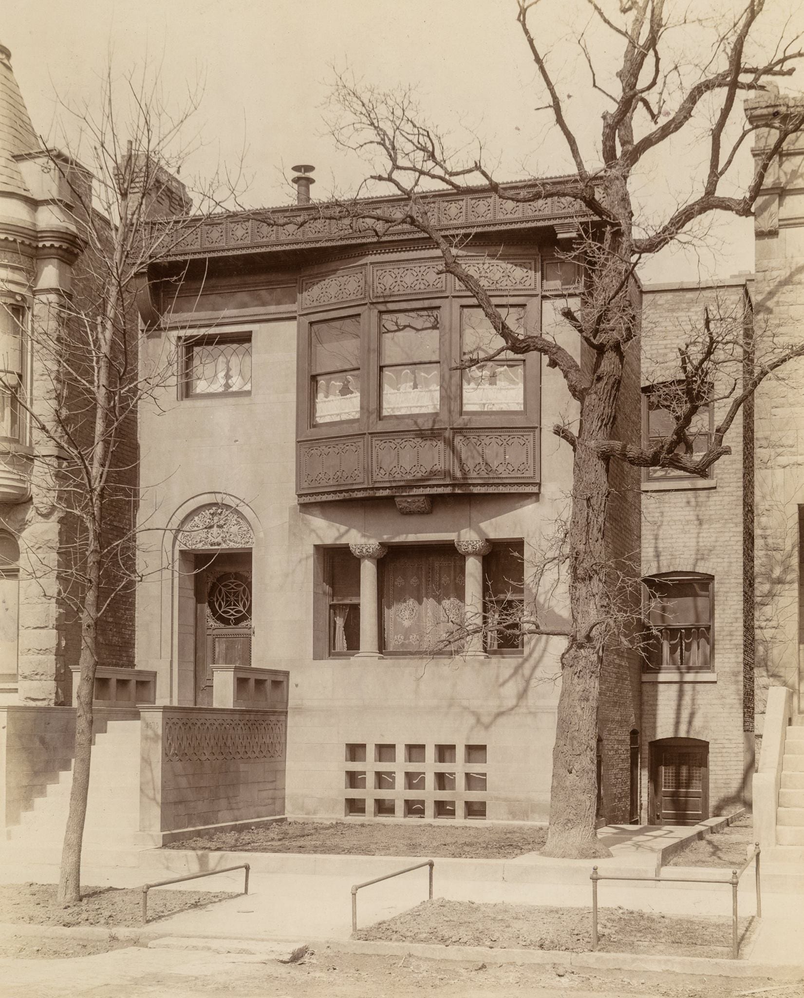 if you look closely at the ornament on adler and sullivan’s 1893 chicago world’s fair transportation building at least four sections of ornament reappeared in both plaster and bedford limestone (i.e., the exterior lunette) in the albert sullivan house (1892), where sullivan himself lived from 1892-1896.