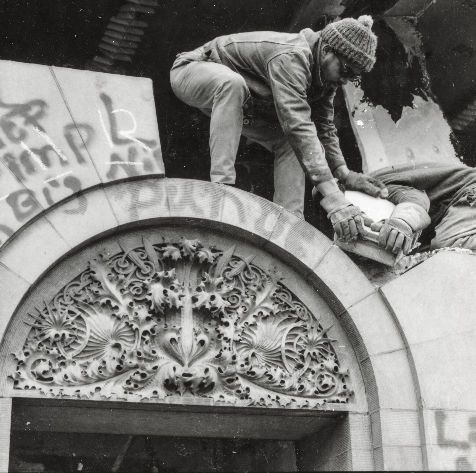 i’ve included a sections of original plaster cove molding salvaged from his bedroom and inner-vestibule. the salvaged carved stone lunette resides at lovejoy, and the lionhead was either stolen or destroyed prior to demolition.