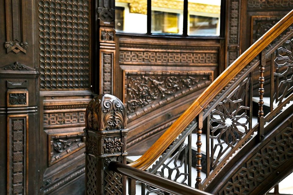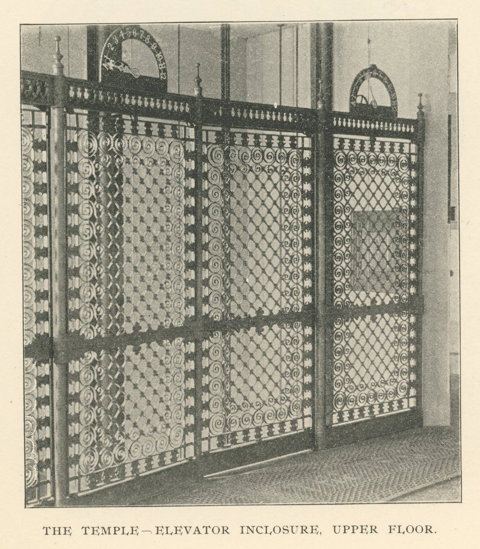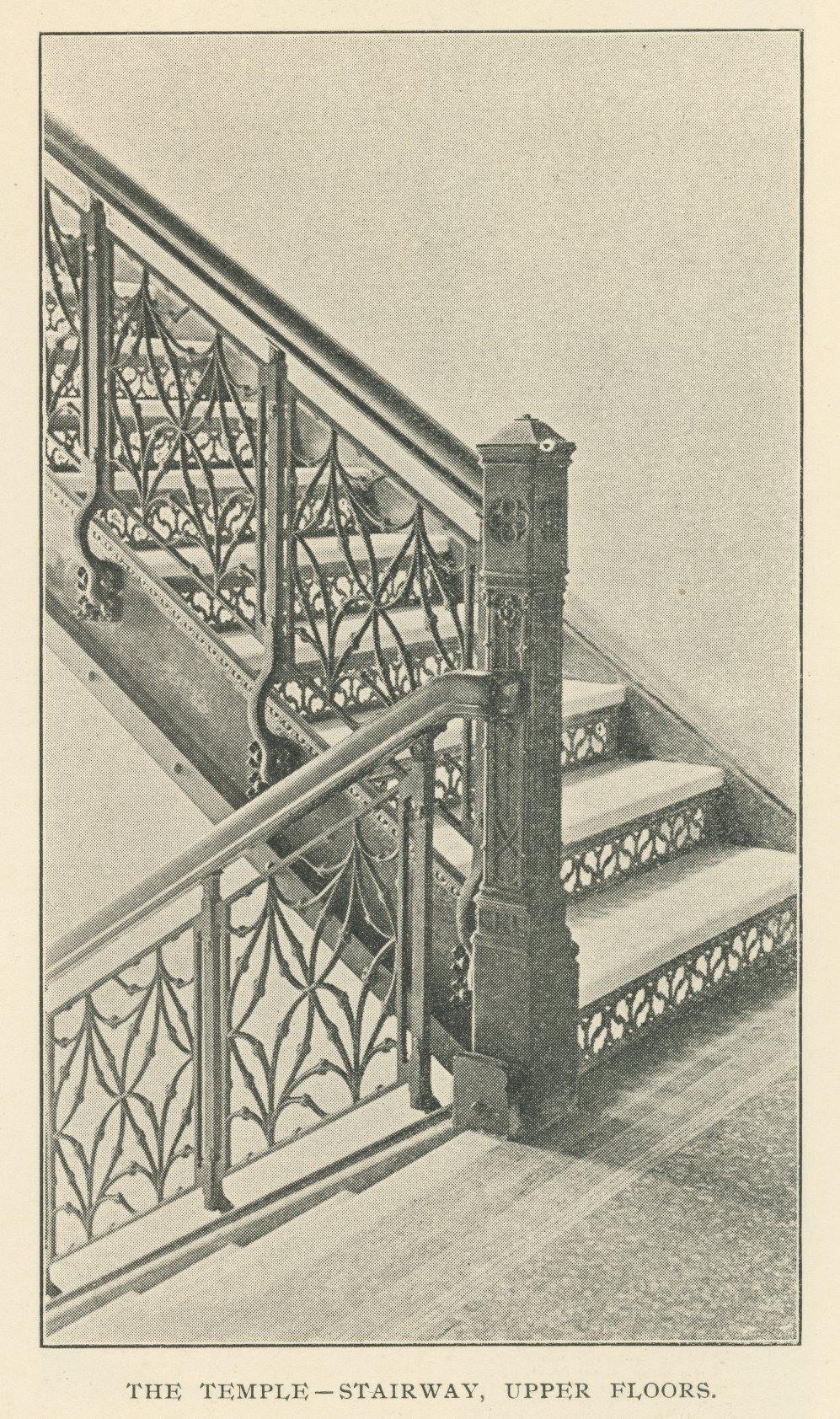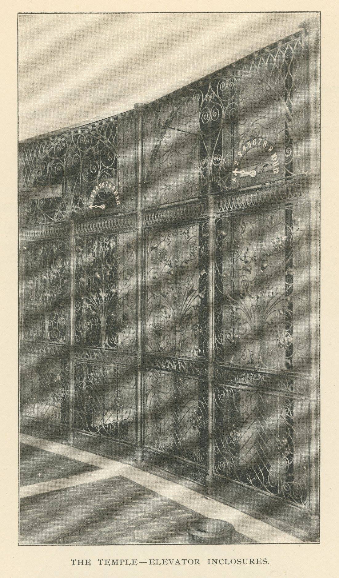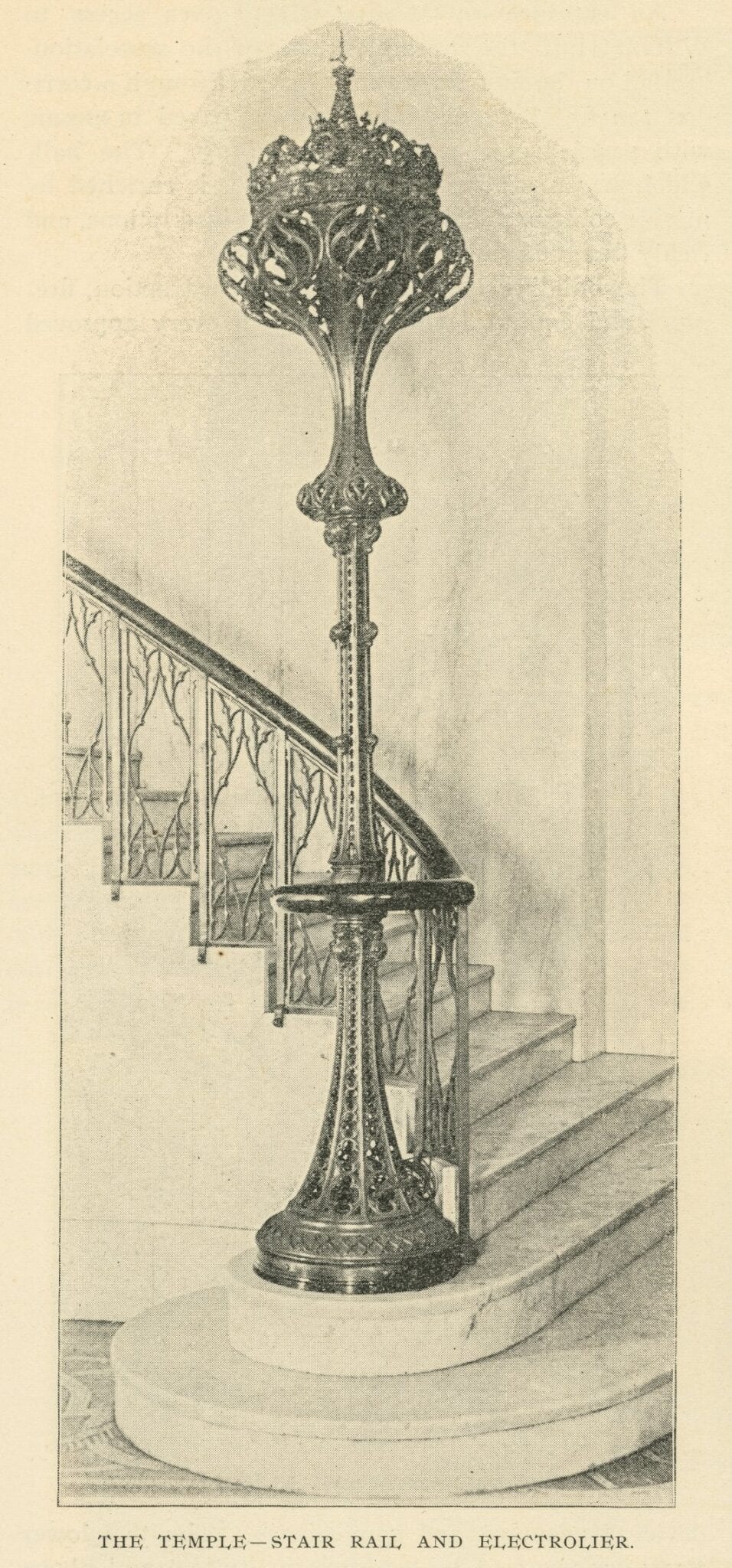 an intimate look at john root-designed interior ornament for burnham and root’s woman’s temple (1892). the staircase, electroliers, and open-cage elevator surrounds were executed in cast and wrought iron with bronze electroplated finish by the winslow brothers, chicago, ills.