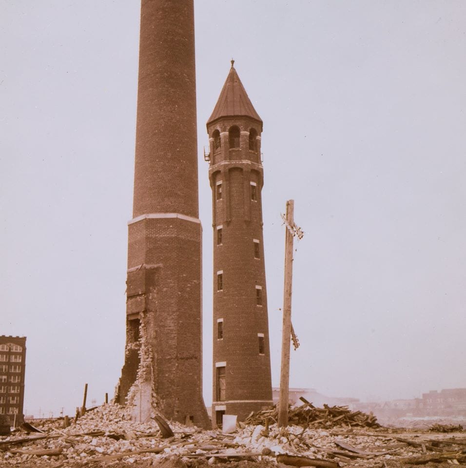john vinci image of burnham and root’s union stockyards (1869) taken in 1960 from the water tower shortly before its demolition.