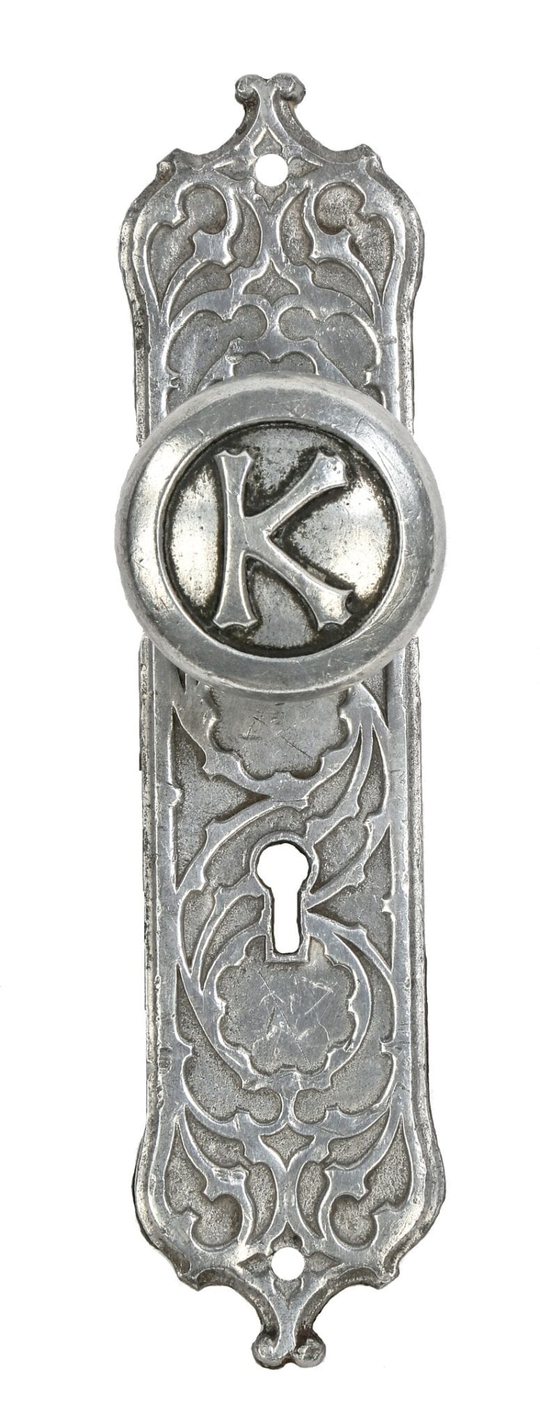 original historically important cast aluminum monadnock building (1891-1893) doorknob and backplate designed by john w. root. the mondanock was one of the earliest commercial buildings to use aluminum as ornament.