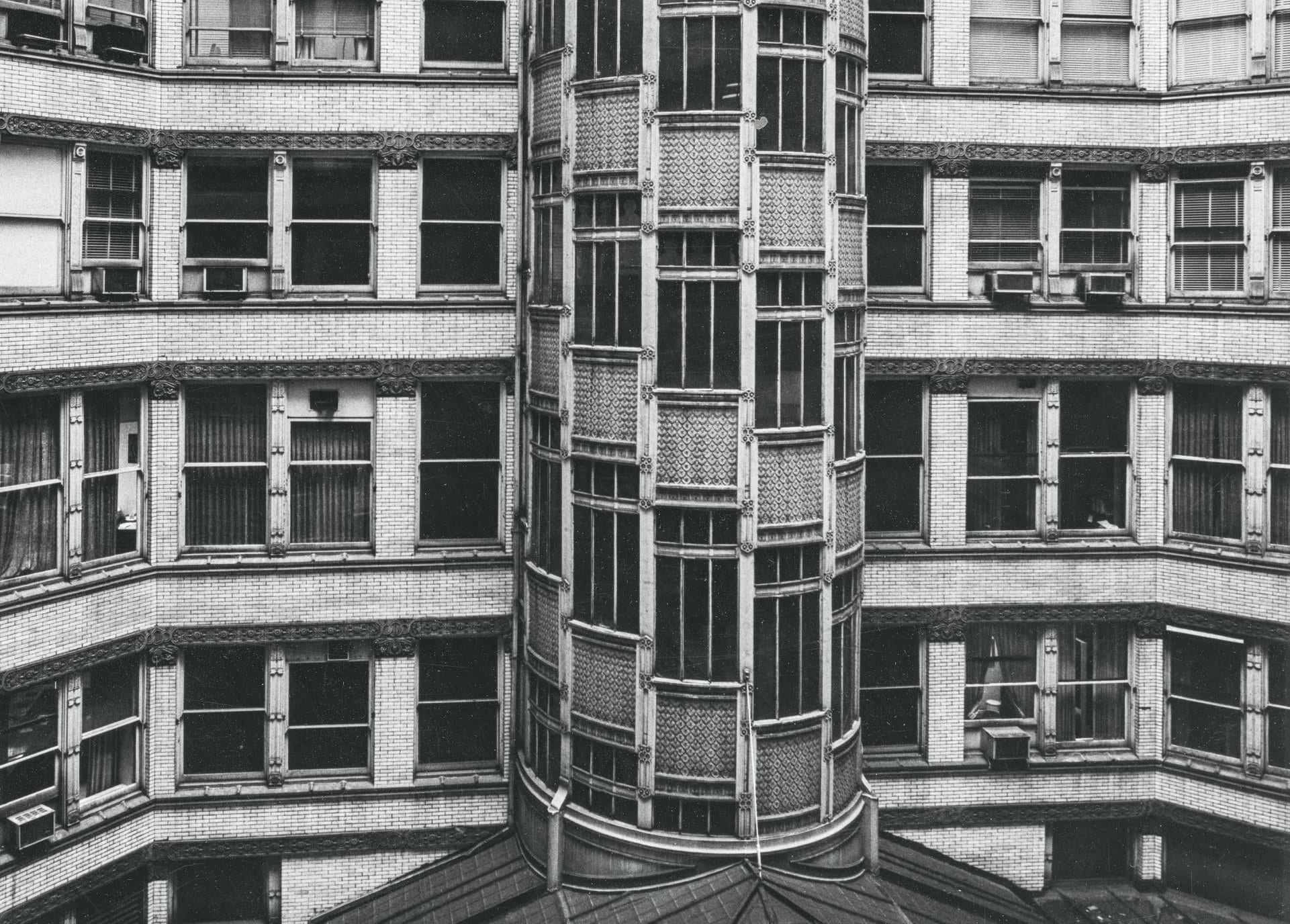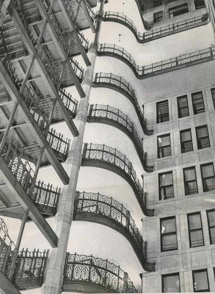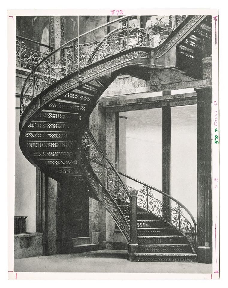 1960-65 richard nickel silver gelatin print of rookery building’s light well and oriel staircase. burnham and root, architects. completed, 1888. image courtesy of john vinci collection.
