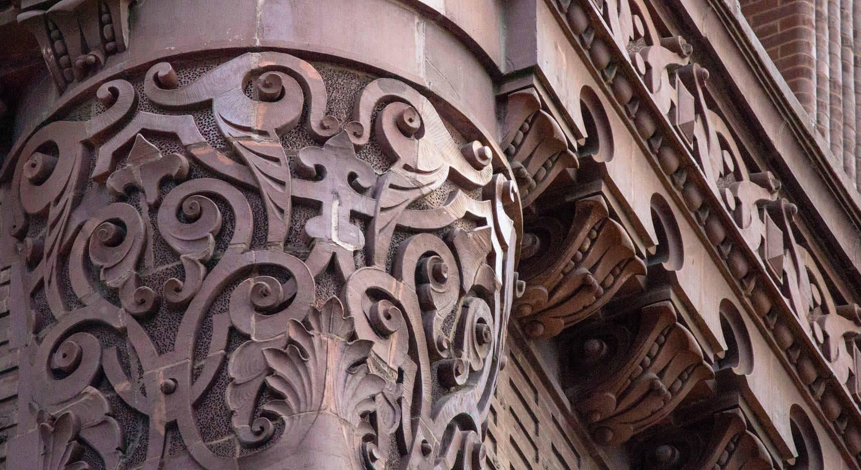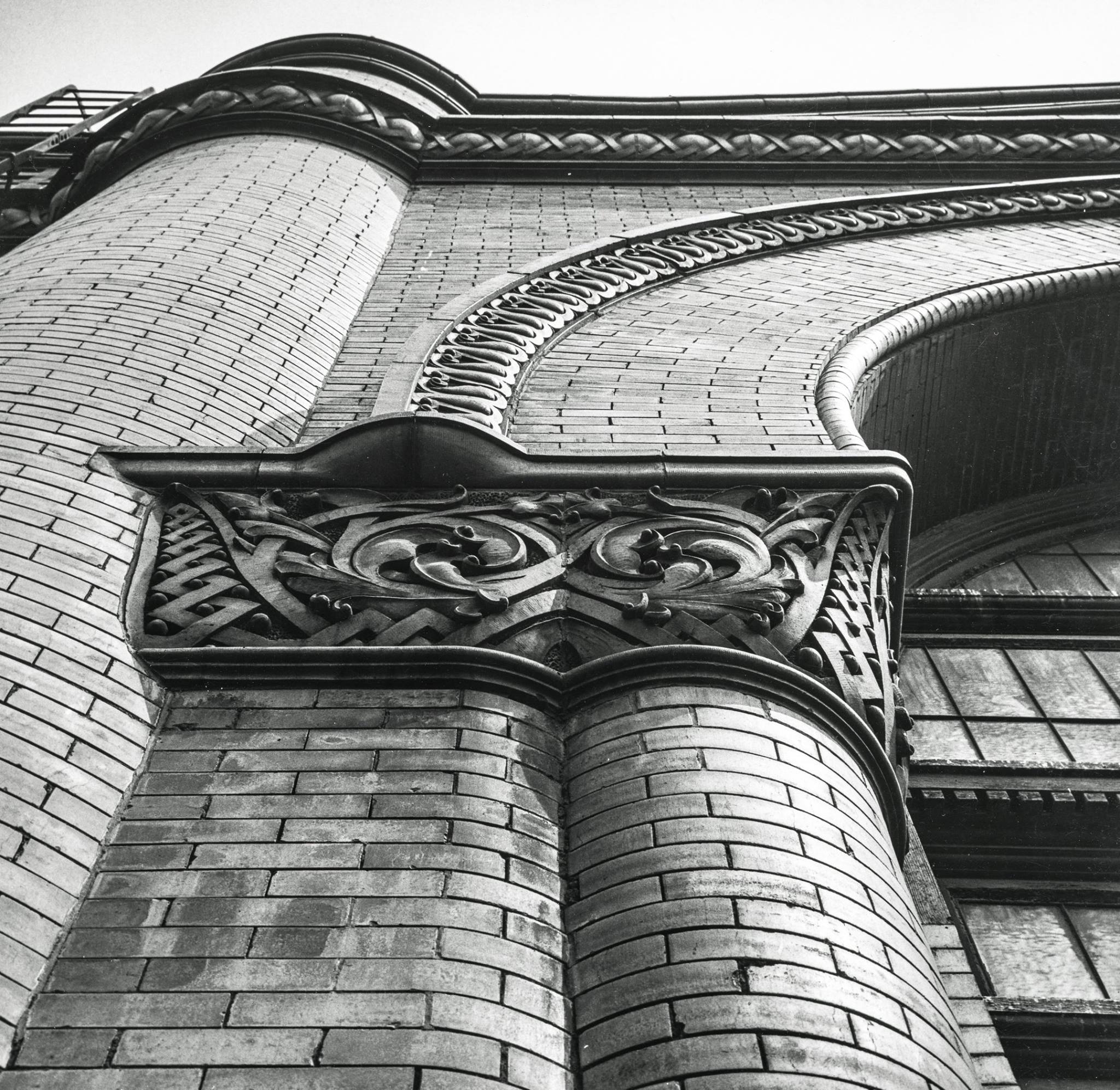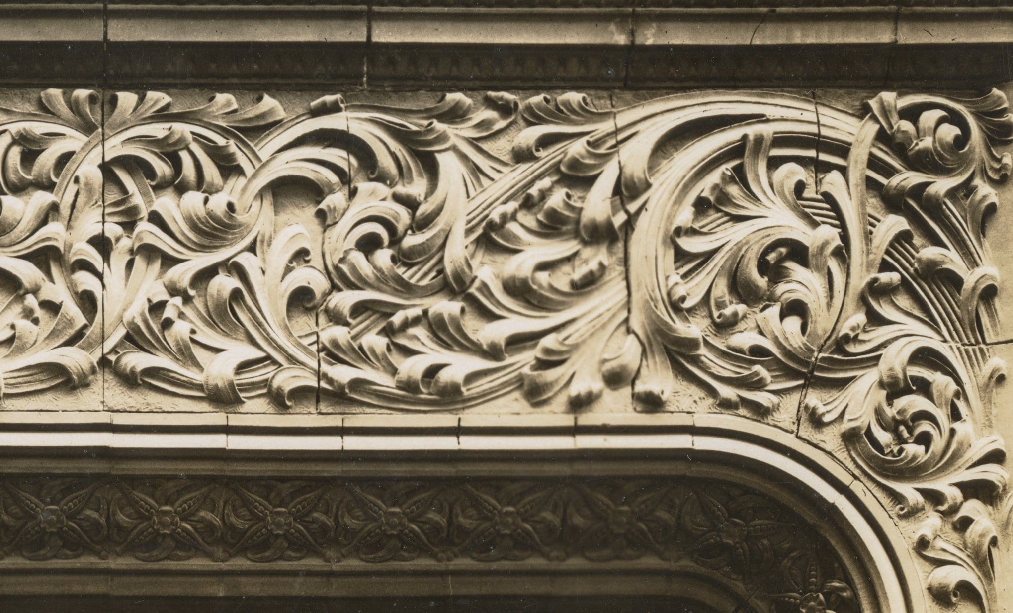 john root-designed exterior carved stone lunette detail – william e. hale house (1885-86). burnham and root, architects. hale later commissioned burnham and root to design the reliance building (1890-95).