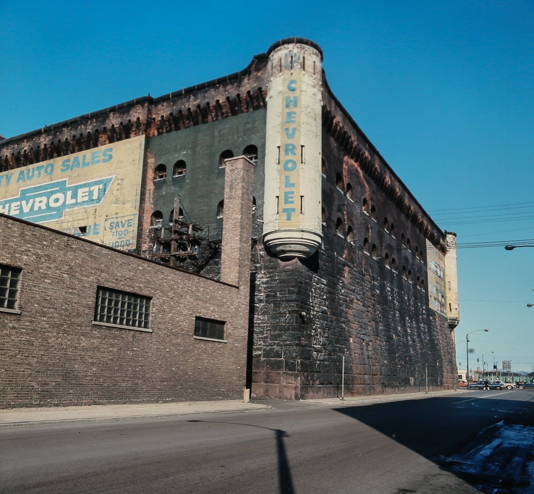 john vinci kodachrome slides (dated, apr, 1966 and may of 1967) of burnham and root’s heavily fortified brick and rusticated stone armory (1891) taken a few years before its demolition in 1967.