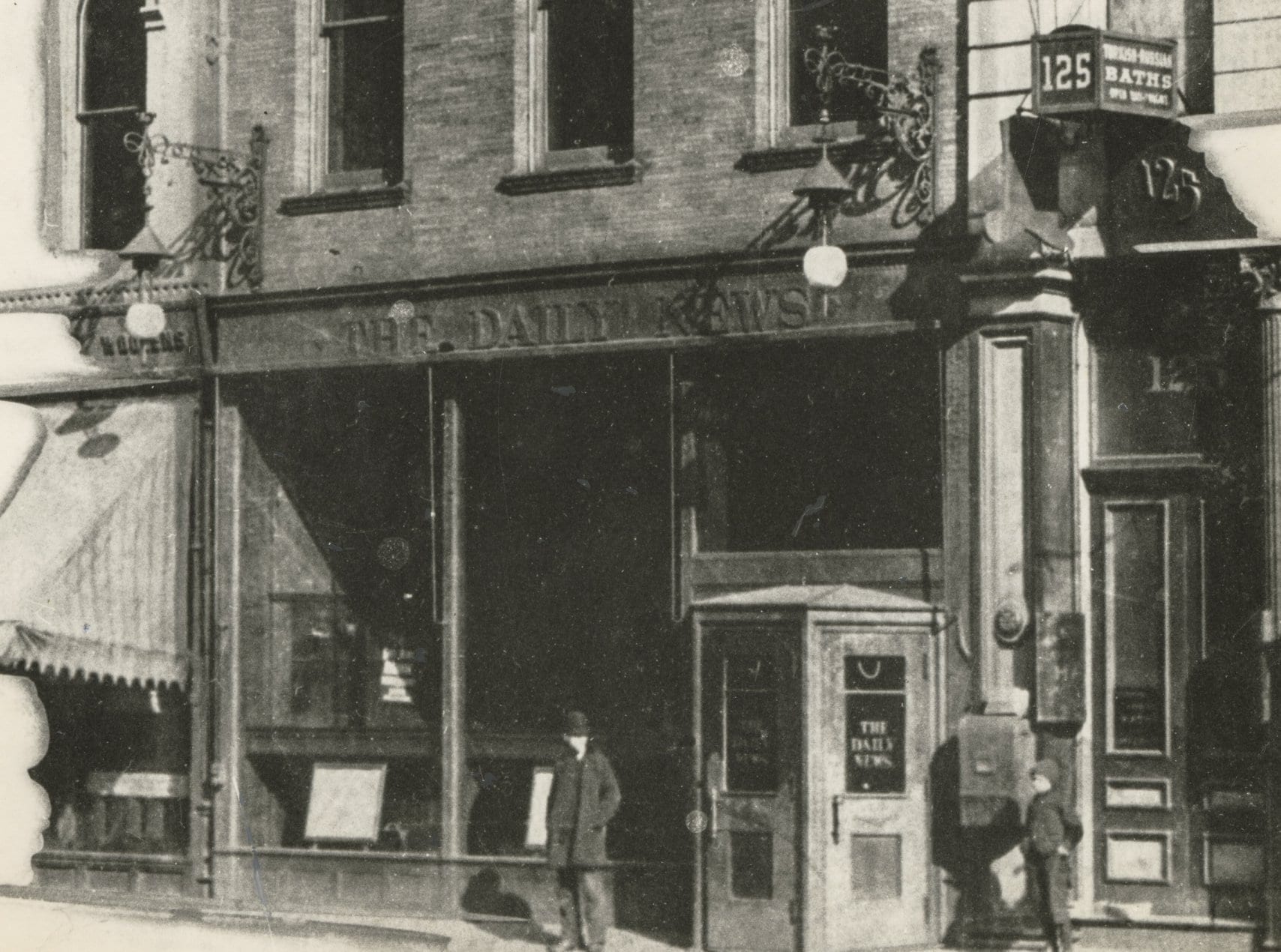 photographic image of burnham and root’s daily news building (1890-1891). the facade was a remodeling of an existent building. a 4-story structure with raised basement was built at the rear, employing georgia pine wood post and beams. the building was demolished in the 1931.