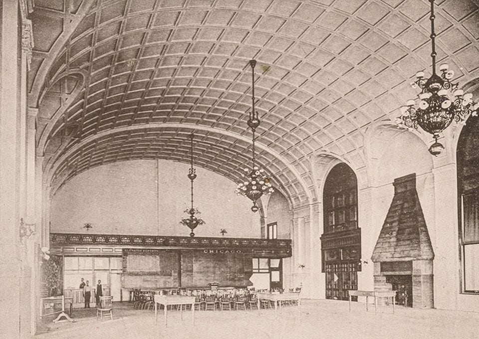 undated image of burnham and root’s kansas city board of trade building (completed, 1888) exchange hall. richard nickel later documented the board of trade (including images of the hall seen here) before its demolition in 1968.
