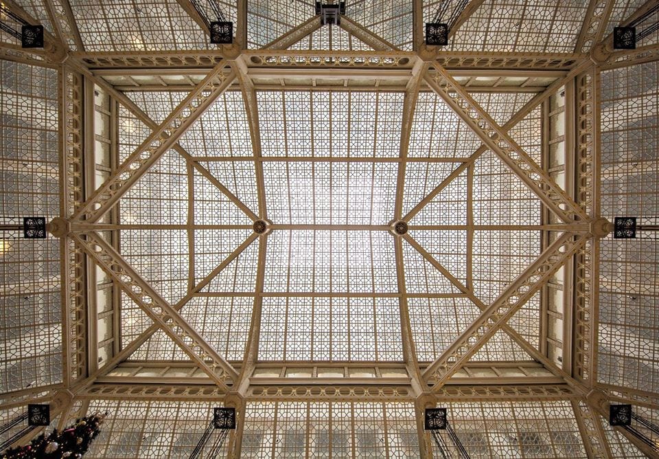 looking up at skylight from central court in burnham and root’s rookery building (1888).