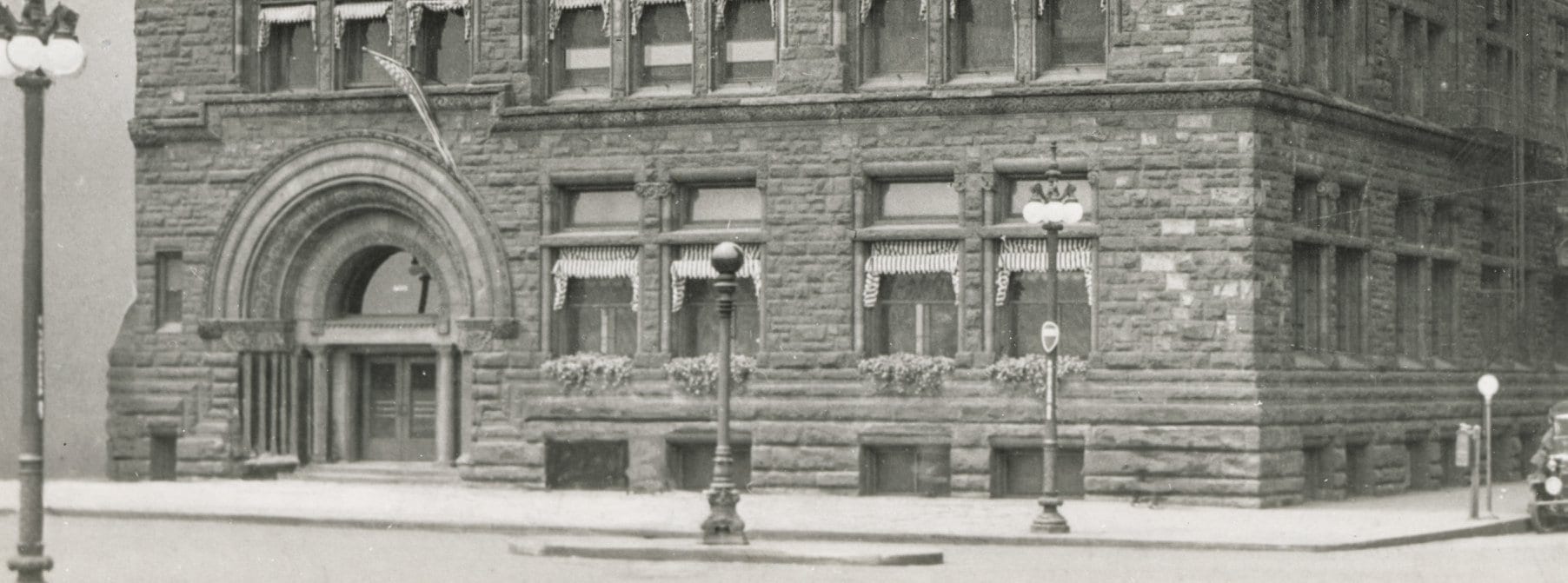 the solid granite cornerstone – weighing in at 10 tons – contained the emblem and date of the society’s organization. the entrance arch was lined with granite blocks from “every state in the union.”