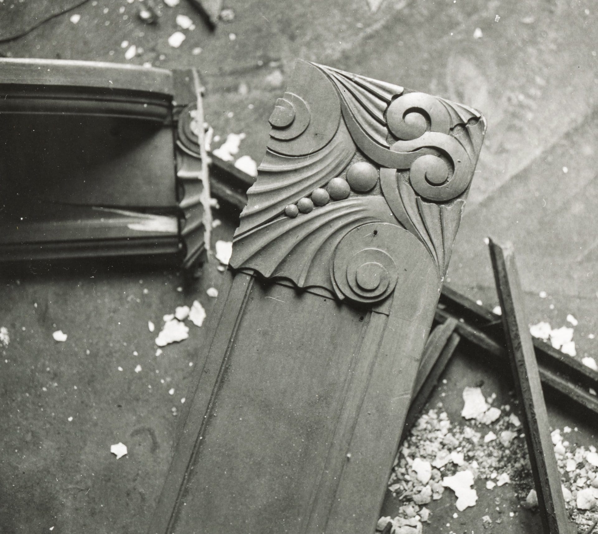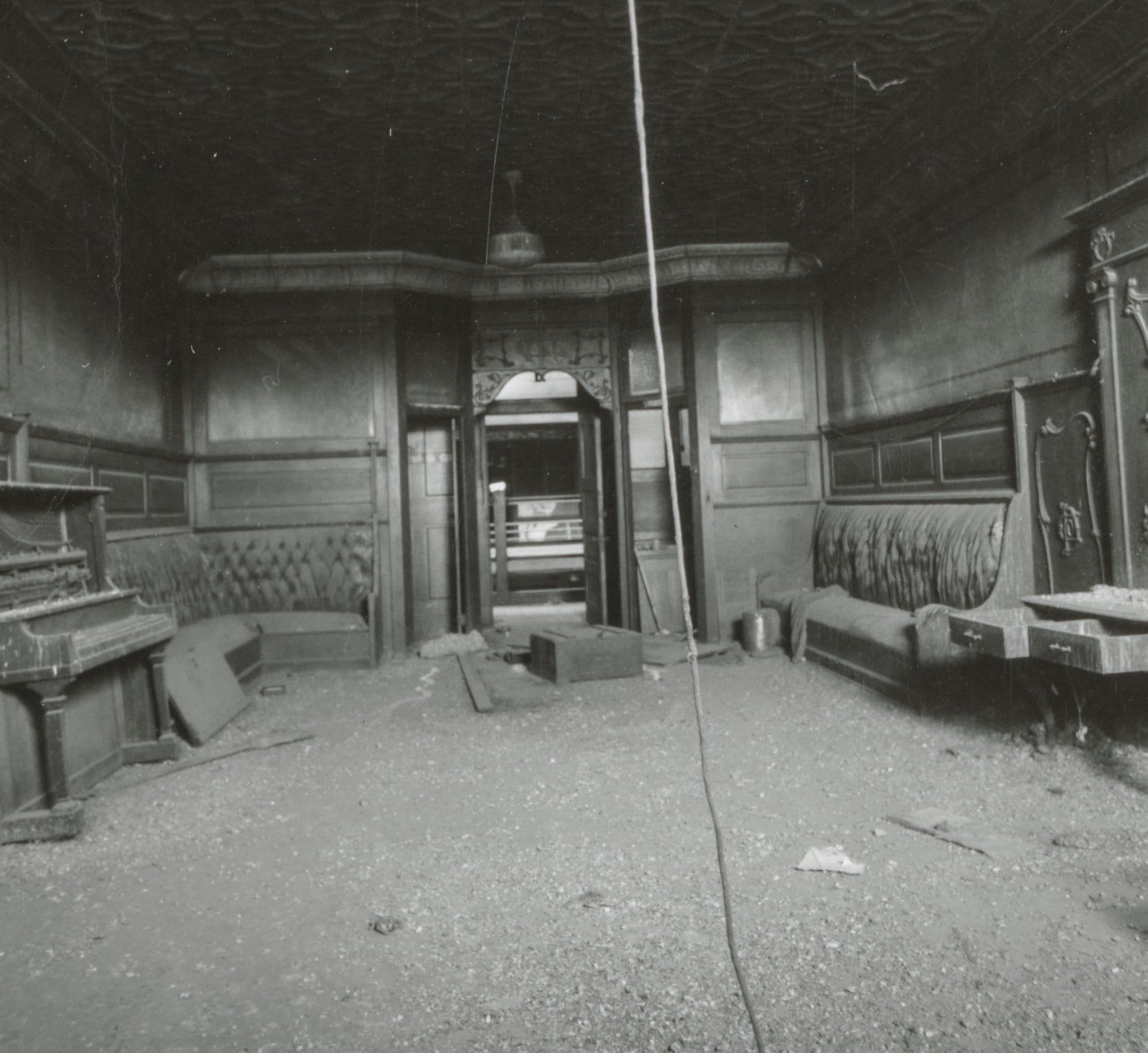 the majority of the images were taken by richard nickel in the early months of 1966. by then, the house had fallen in disrepair, with most of the interior left in shambles. it was demolished soon after. at the very least, nickel made a thorough visual record of the exterior and interior before it was smashed. i’m not entirely sure what was salvaged, but i suspect john vinci, david norris, and nickel rescued some ornament.