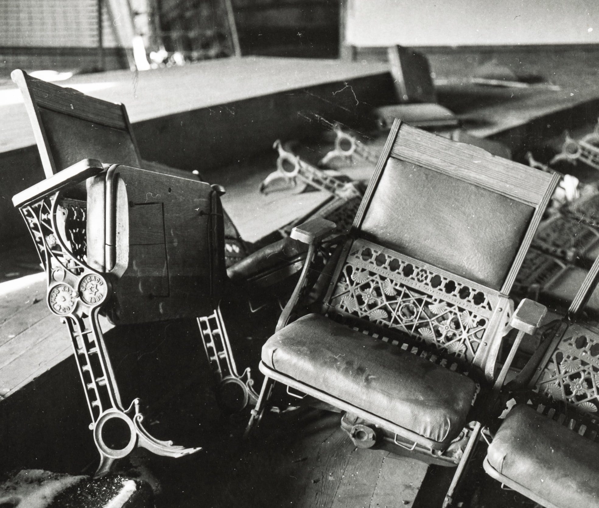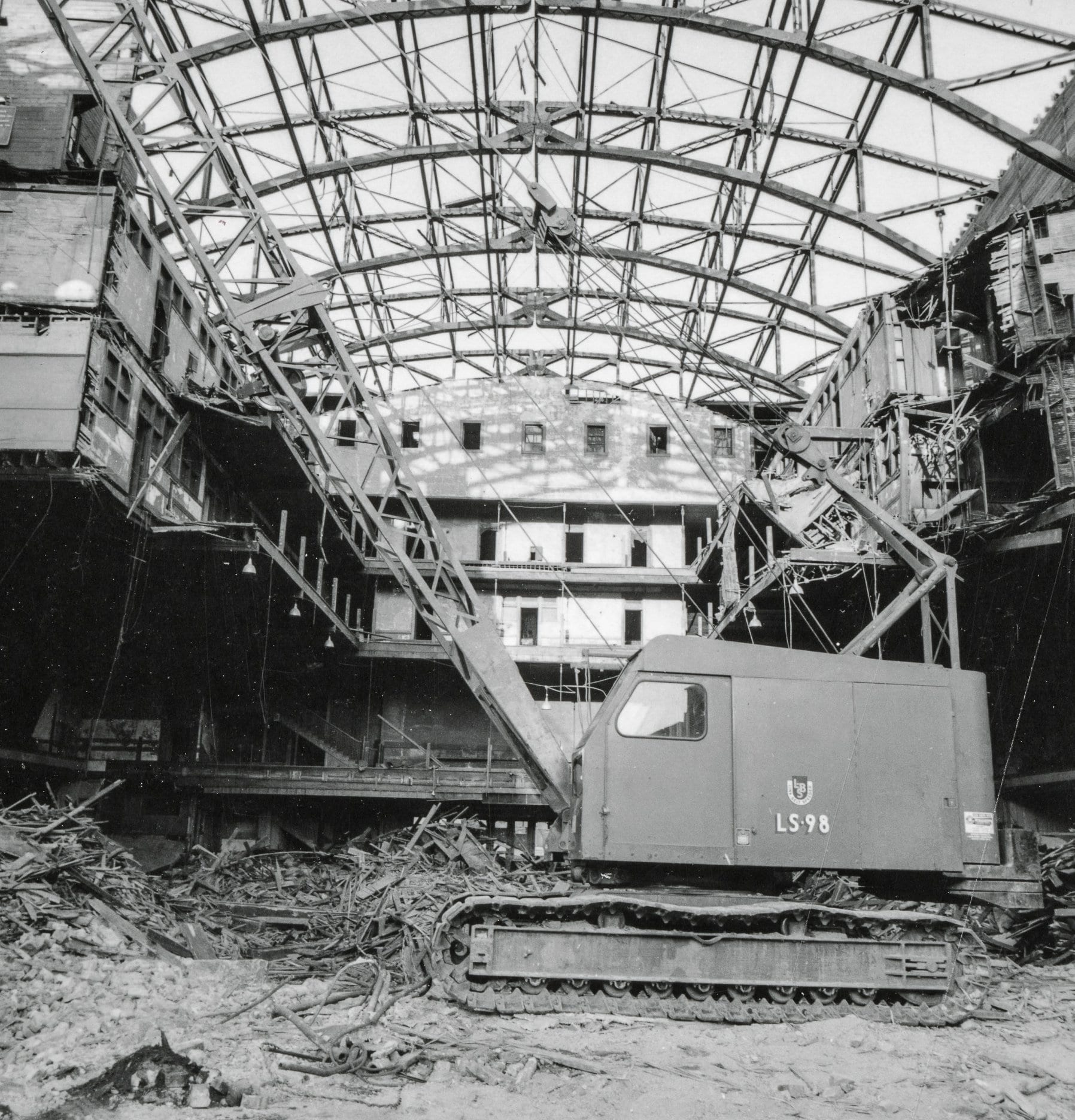 both vinci and richard nickel recorded the building’s demolition – inside and out, with vinci shooting in color and nickel black and white. i believe they both shot using hasselblad 500 c medium format camera.