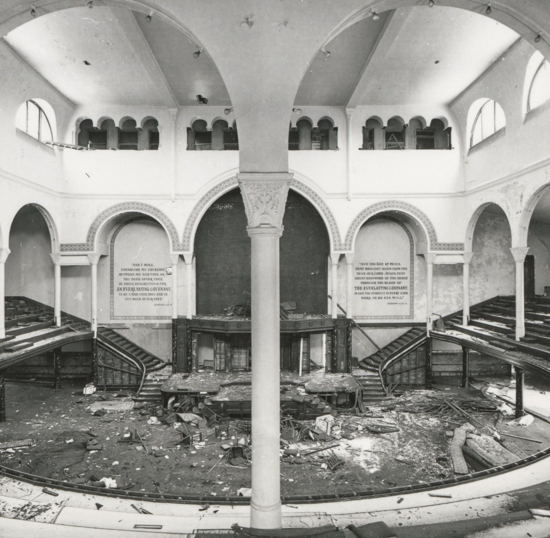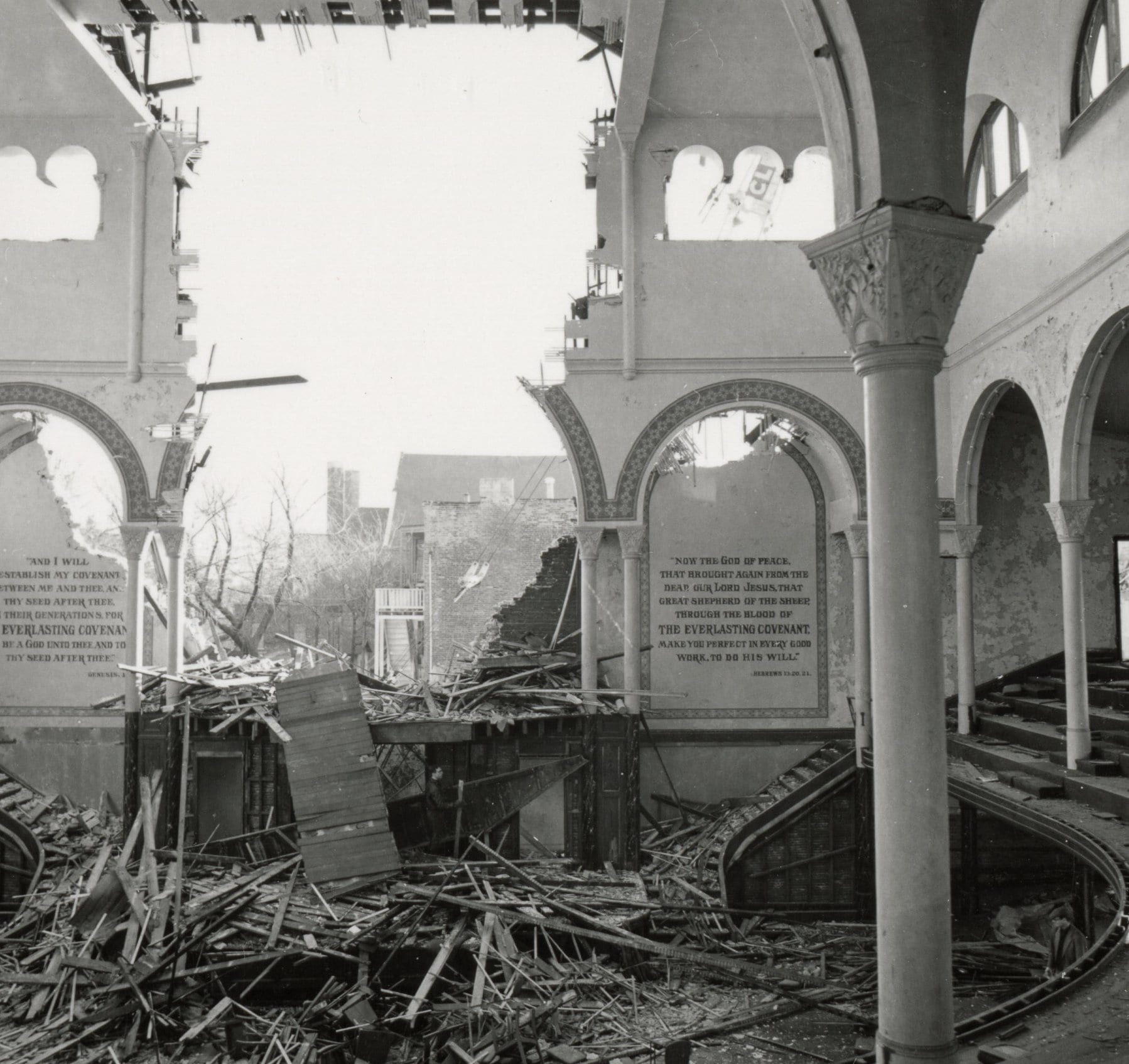 richard nickel images of burnham and root’s romanesque style church of the covenant (1889) shortly before and during its demolition in 1971 i believe. note the “possessed” doll head photos… cannot recall what the significance was other than a bit of humor.