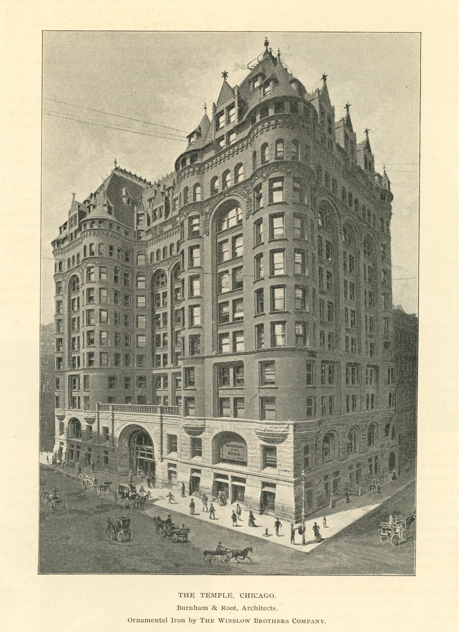 the woman’s temple was smashed in 1926. nearly 13 years later, another burnham and root masterpiece, the 1892 masonic temple, which was also outfitted with equally stunning root-designed winslow brothers ornamental ironwork, was destroyed in 1939.
