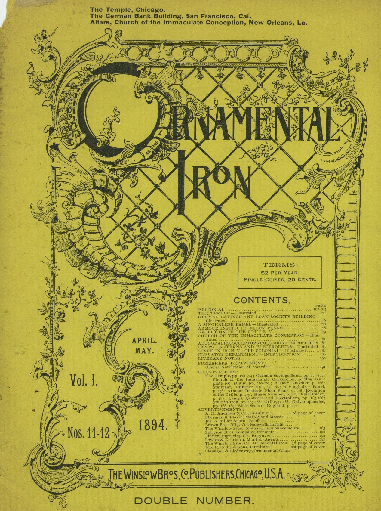 description of building and its ornament featured in winslow’s 1894 issue of “ornamental iron.”