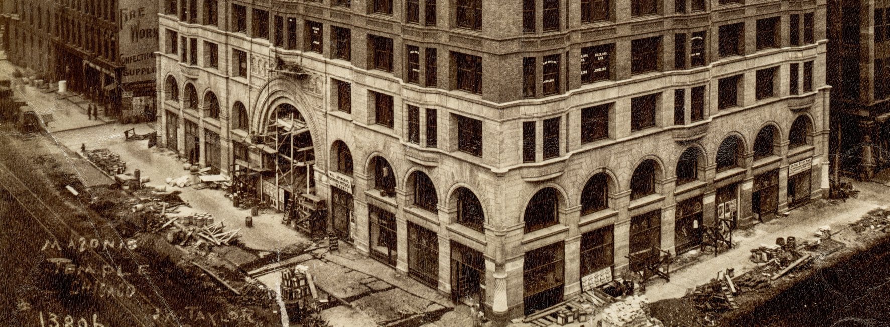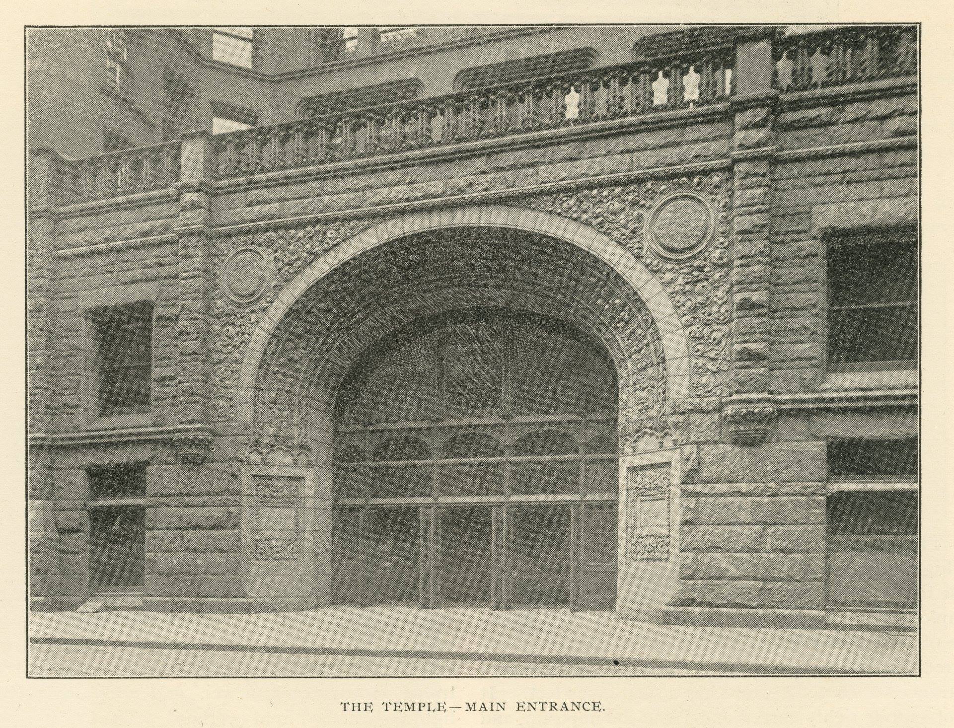 the temple was destroyed in 1926 to make way for the 22-story state bank of chicago. sadly, there are very few images of the temple around the time of its demolition.