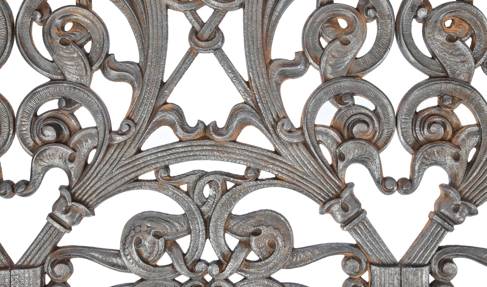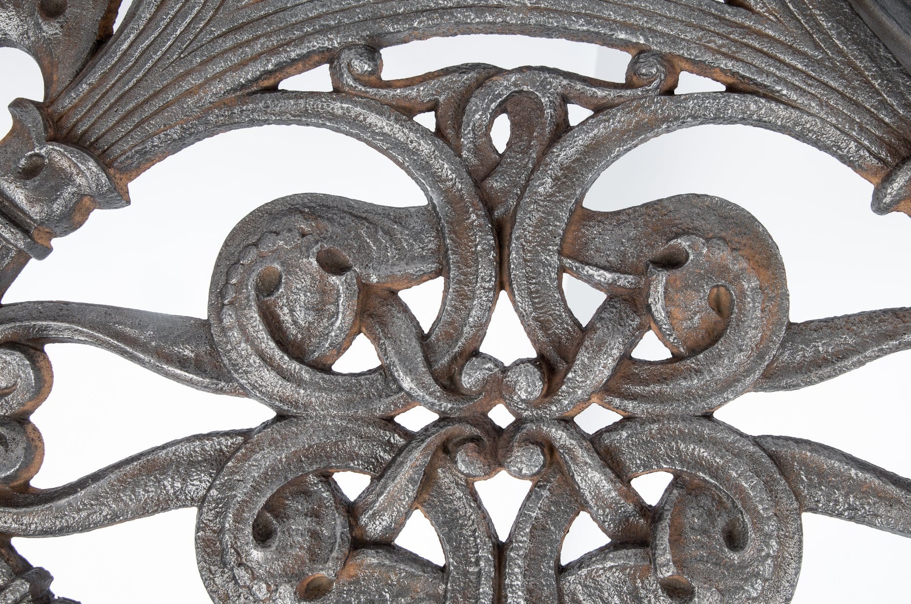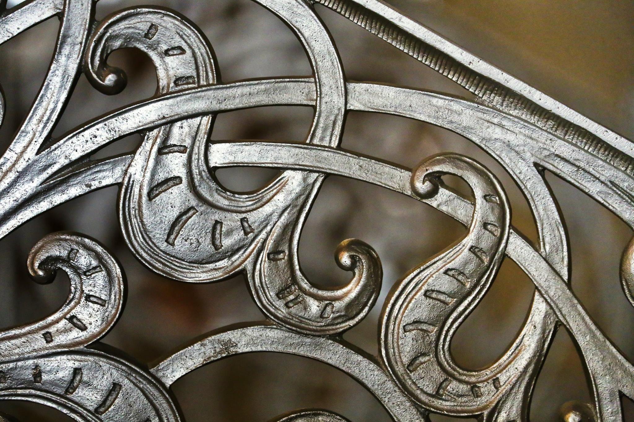 chicago-based winslow brothers executed the board of trade’s ornamental iron work – including the oversized panel (it measures ten feet in length by three feet in height). the bower-barff finish wore off long ago – with the weathered panel exhibiting allover rust and light pitting, restoration work will be necessary.