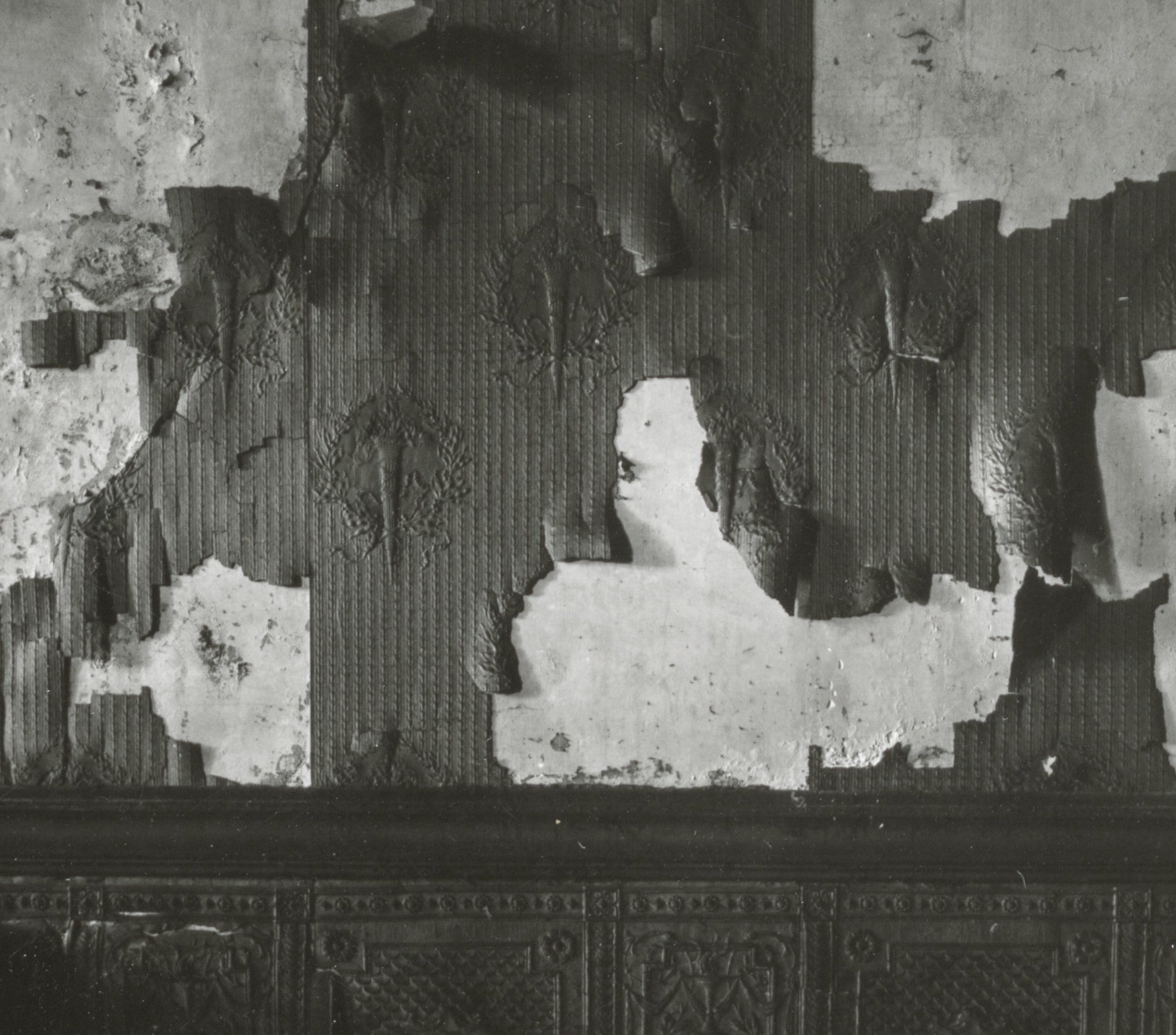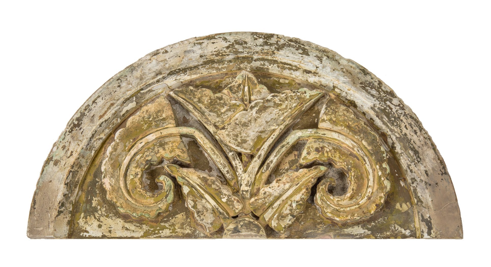 original unrestored cast plaster interior ceiling escutcheon lunette designed by john w. root for burnham and root’s hayden house completed in 1879. the house was demolished in the 1970s.