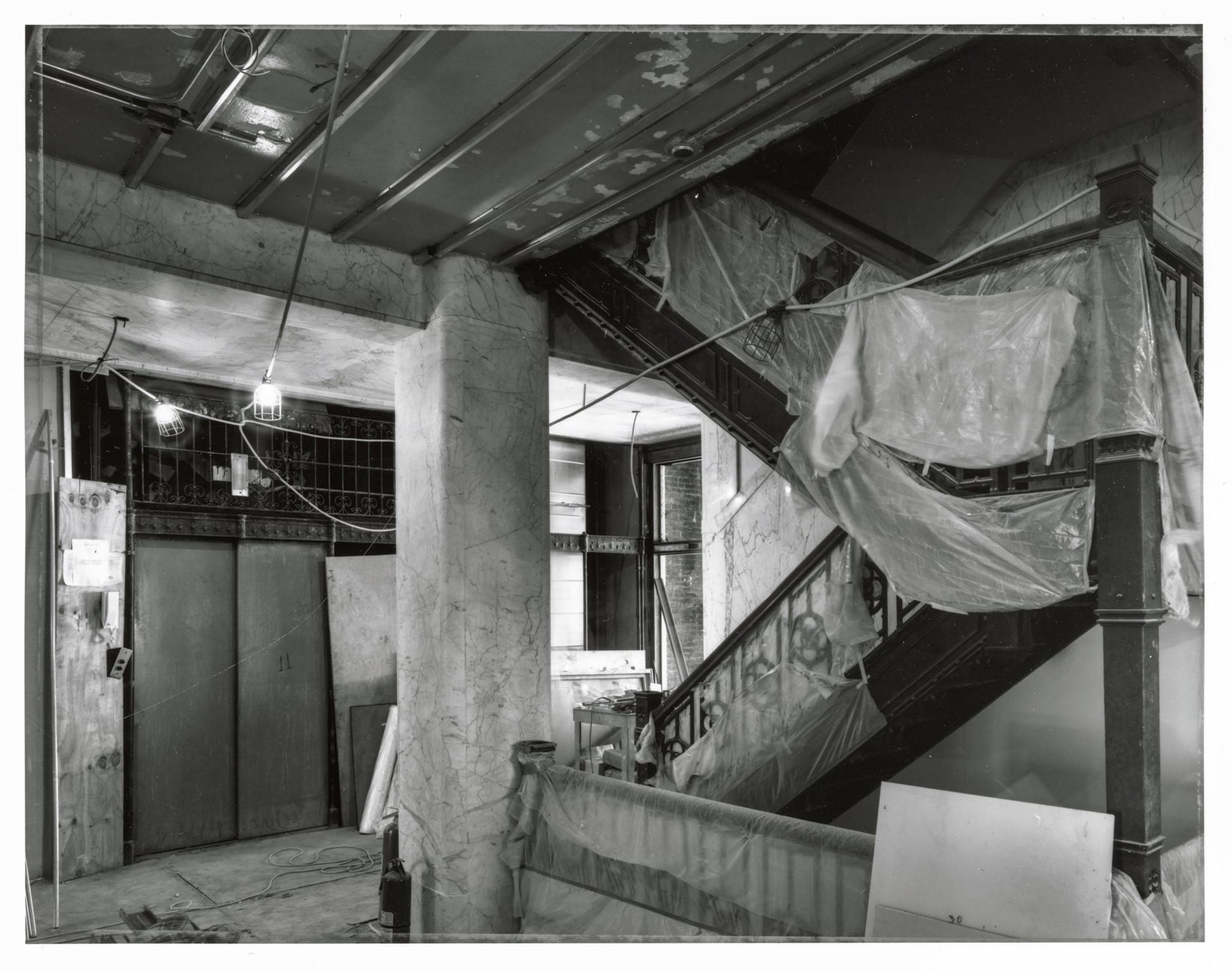 image documenting interior renovation of reliance building’s eleventh floor lobby during it’s transition to “hotel burnham.” the boutique hotel was later purchased in 2016 and renamed the “staypineapple” by its new owners.