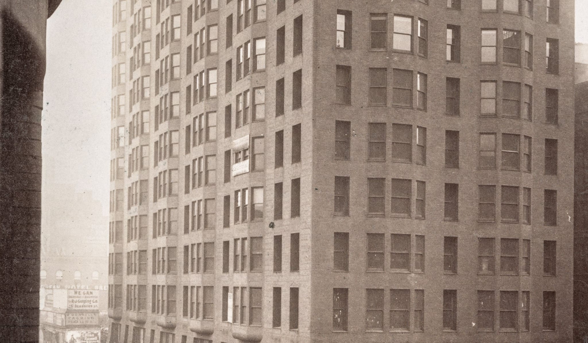 james w. taylor albumen of burnham and root’s 17-story monadnock building taken shortly before it completed in 1891.