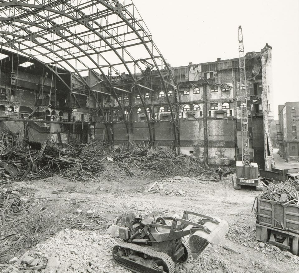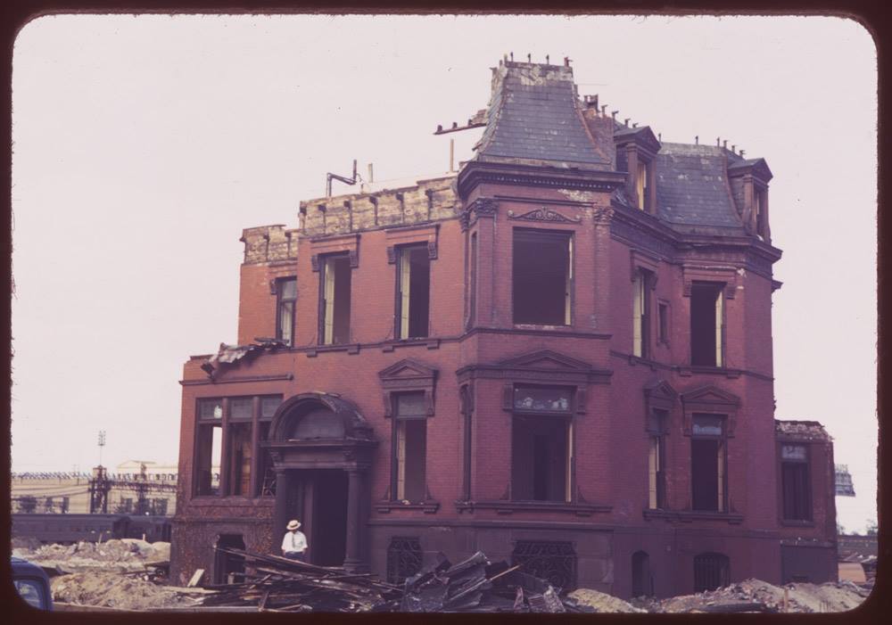 richard nickel image of burnham and root’s phenix building (1887) during its demolition by national wrecking in 1959.