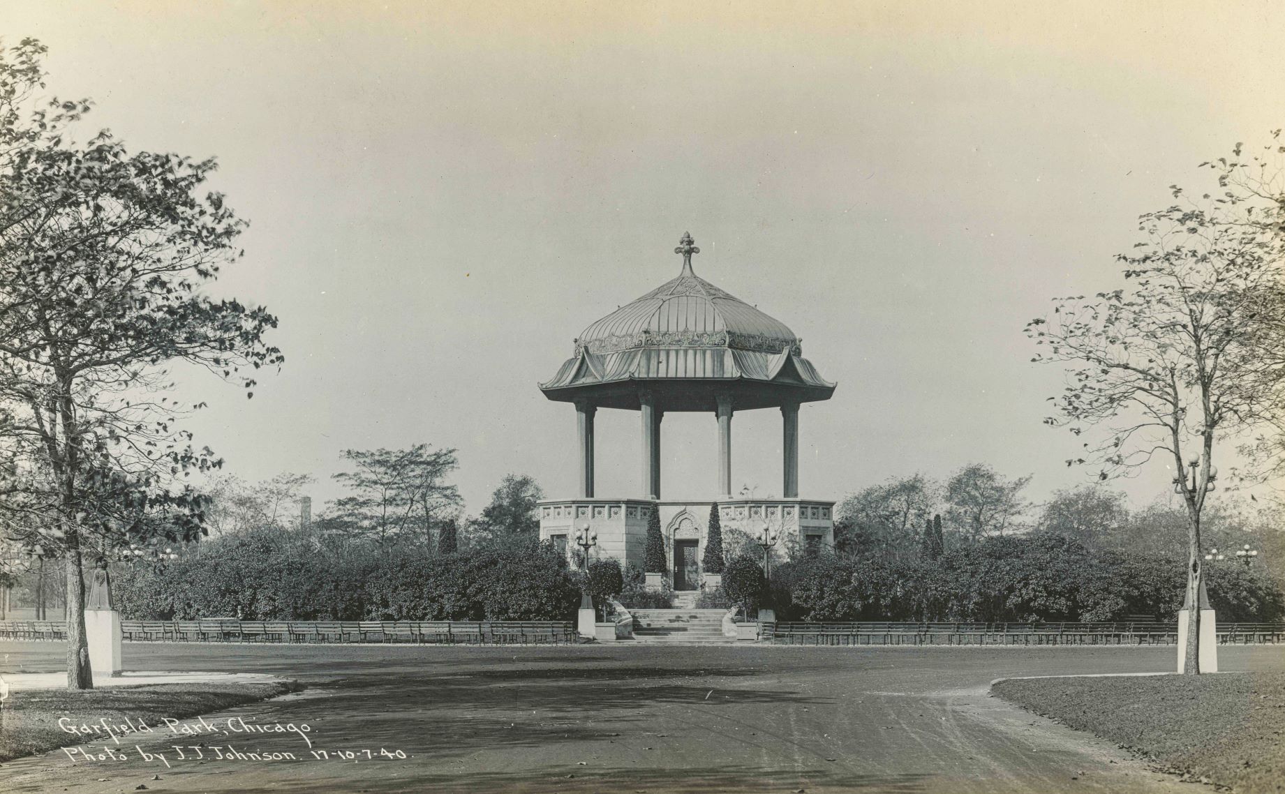 photographic study meticulously documenting the sad state of j.l. silsbee’s largely forgotten bandstand (1897) located in garfield park. the images provide visually compelling evidence of its decay and defacement through deferred maintenance.