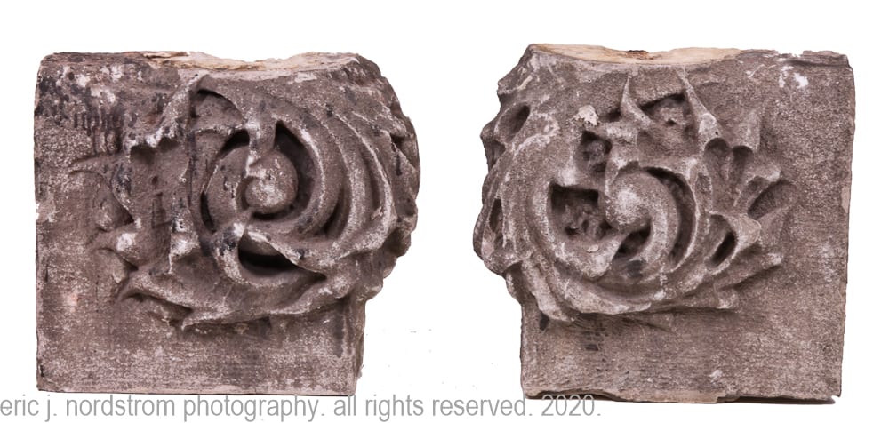 a selection of architectural artifacts and objects discovered and documented from disfigured and/or demolished buildings