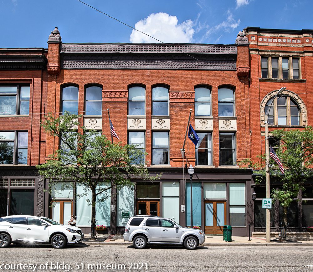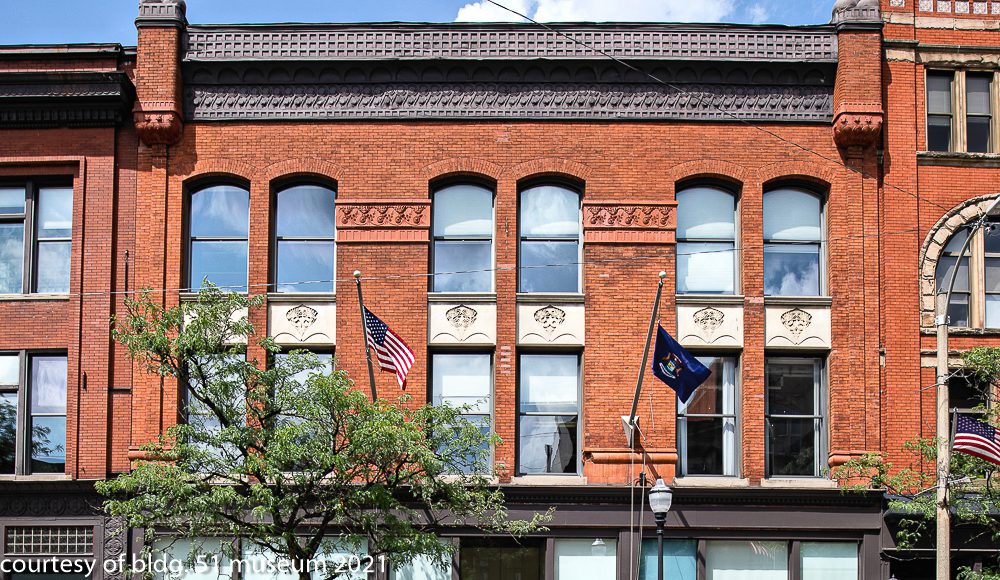 the three-story commercial brick building with basement, was erected for grocer bernhard dessenberg by bush and patterson (76 north burdick street), a local construction firm.