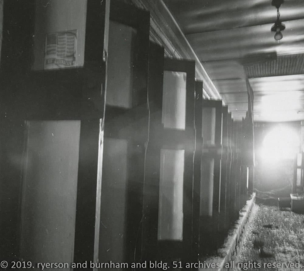 the original drill room floor was comprised of polished black oak. interior company quarters and officers’ rooms were supported by three-hinged braced trusses and steel cables suspended from the roof. the “hanging” upper stories were equipped with bathrooms, banquet halls, kitchen, serving rooms, and lockers.
