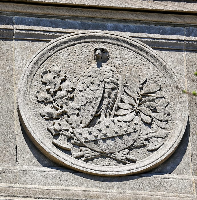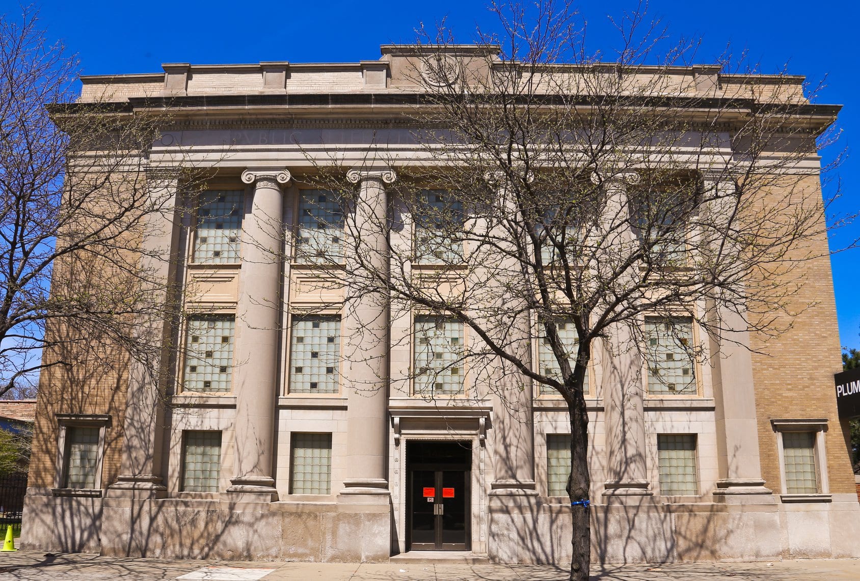 among the more interesting decorative elements is a round plaque near the roofline, featuring the figurative design of an eagle holding a shield and surrounded by laurels. according to public record, the building was designed in 1921, as a 3-story, 70 x 135 foot steel, brick and stone structure with reinforced concrete flooring and a concrete foundation. the public life insurance company commenced business in 1920 and the business offices at 1400 w. washington boulevard were constructed in the next two years at a cost of $360,000.