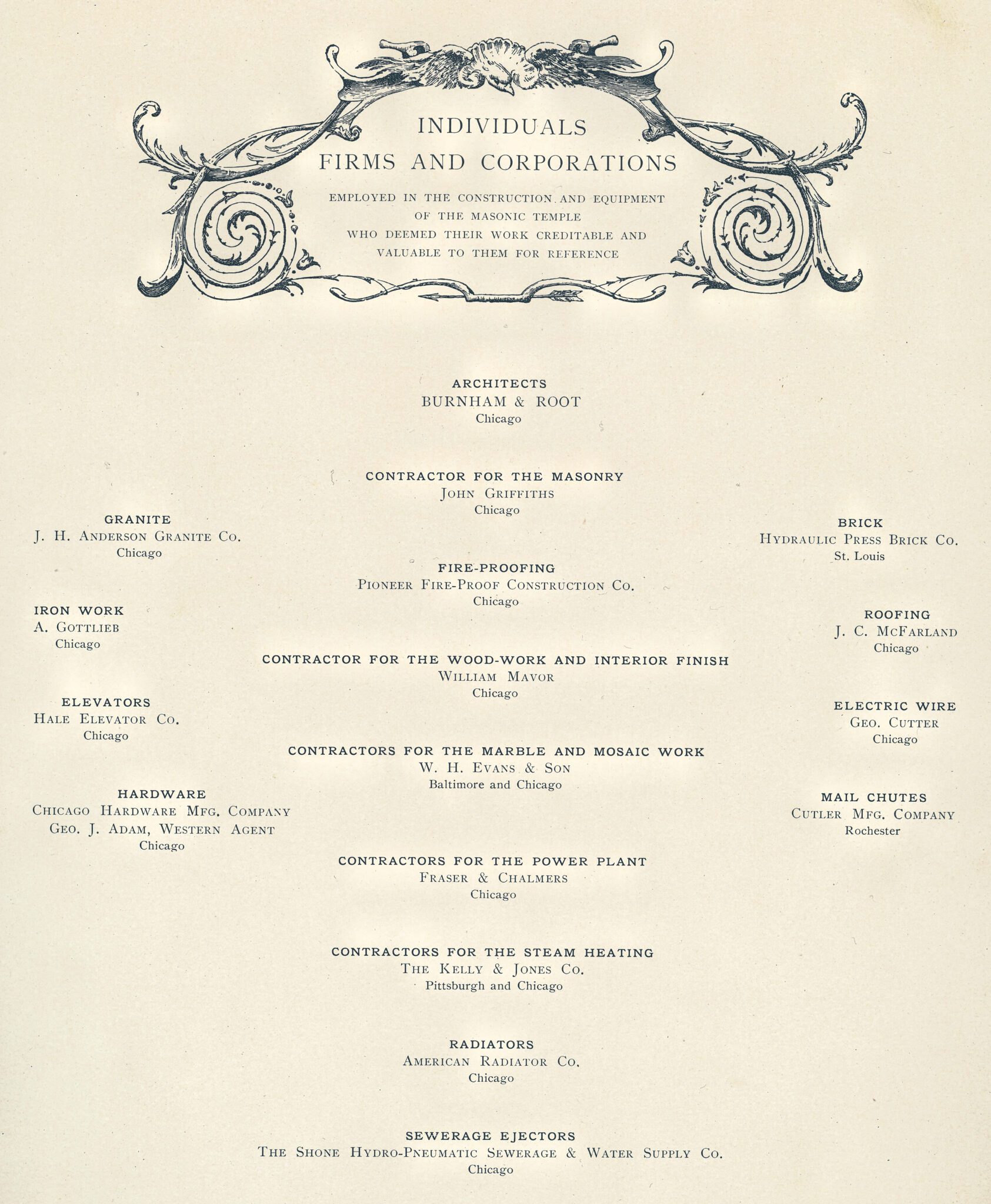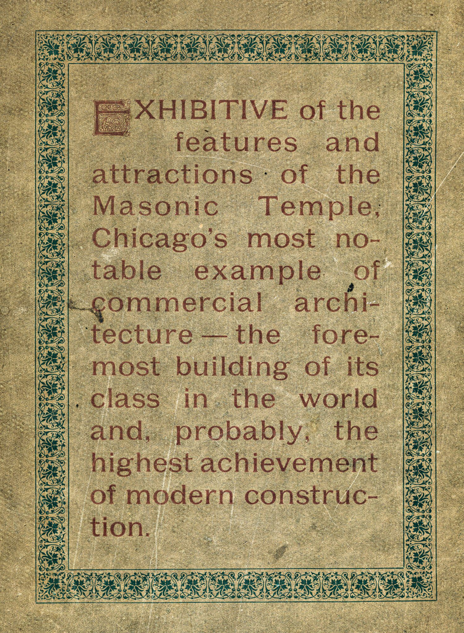 19 Oct rare dedication booklet published shortly after completion of burnham and root’s masonic temple