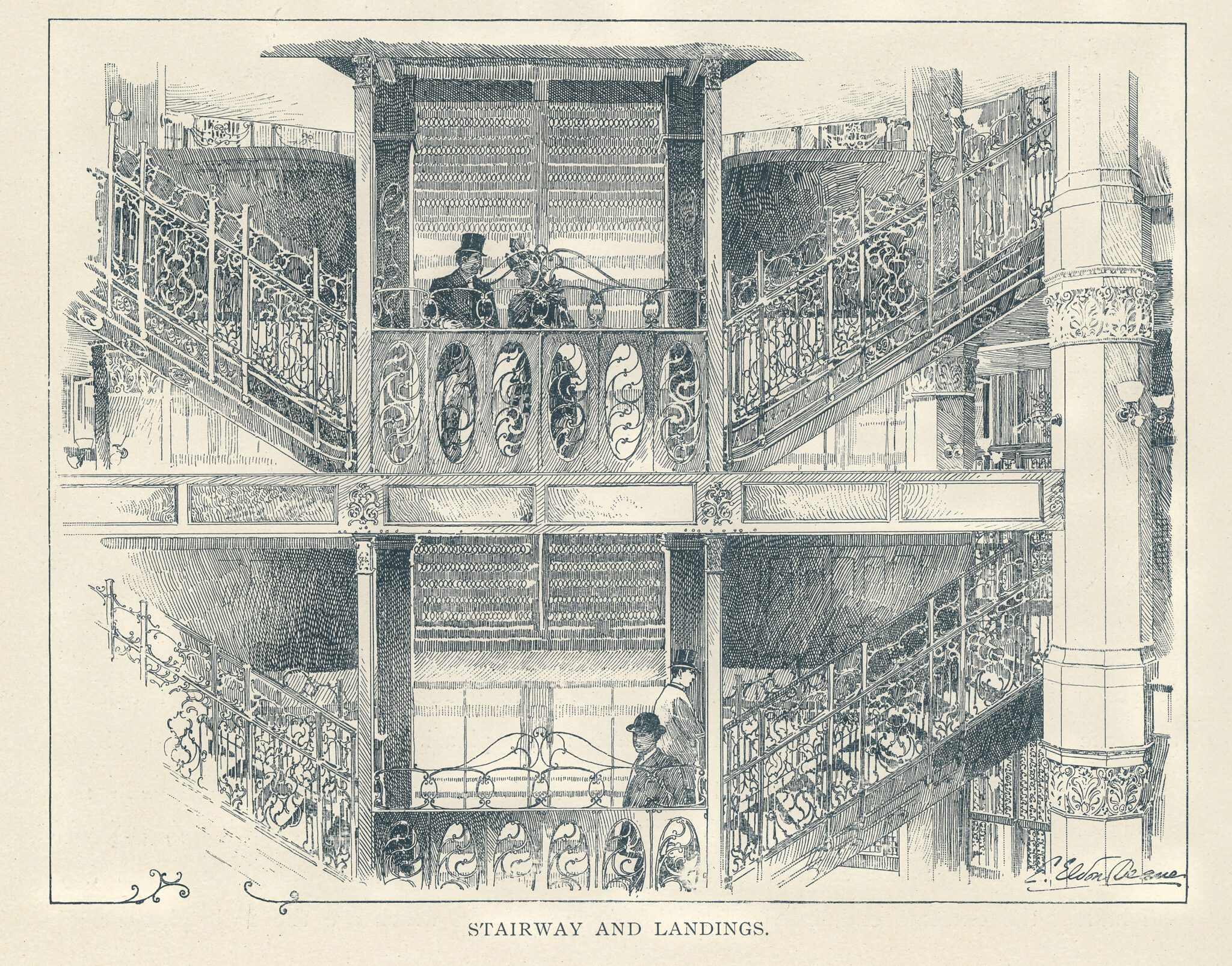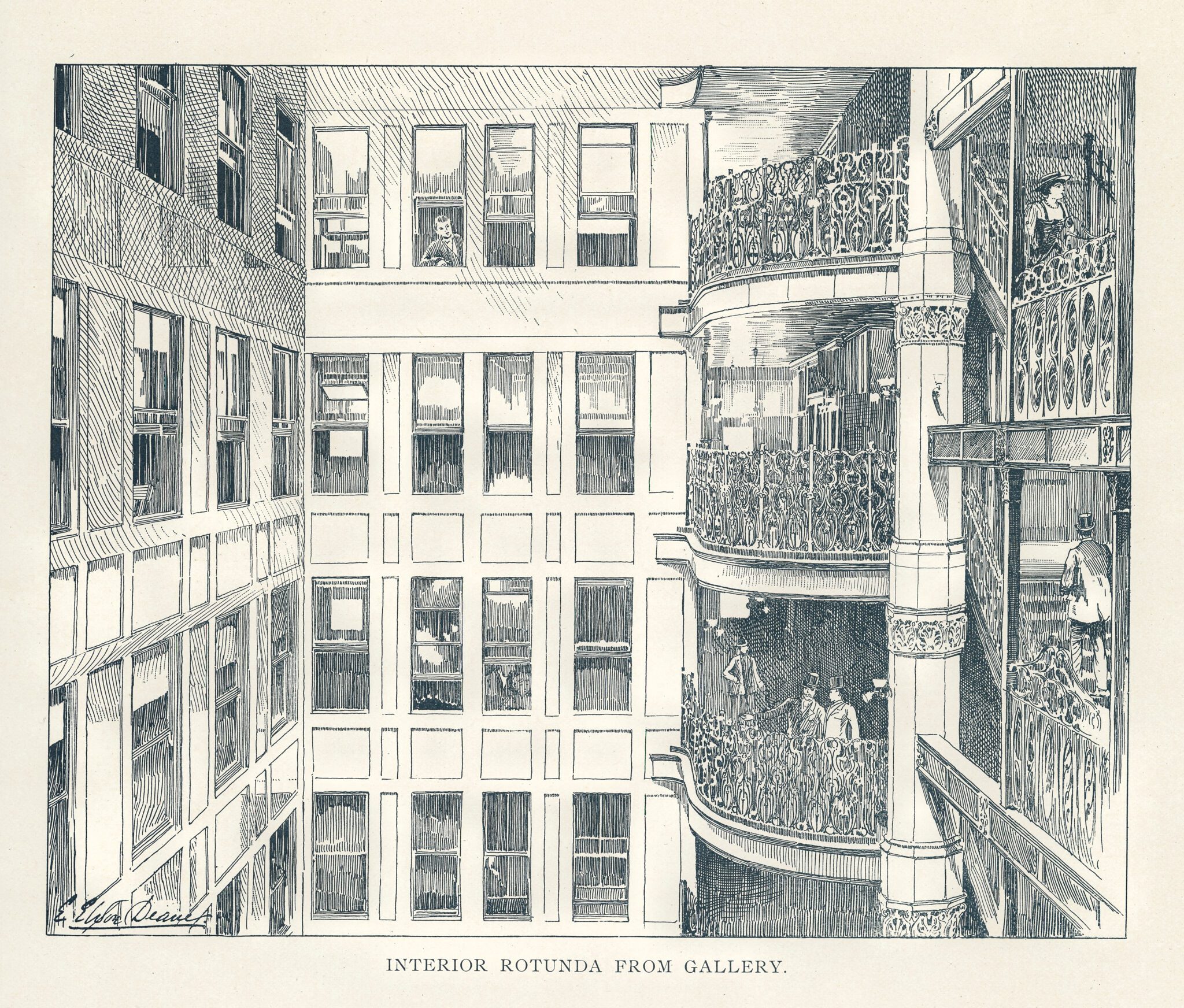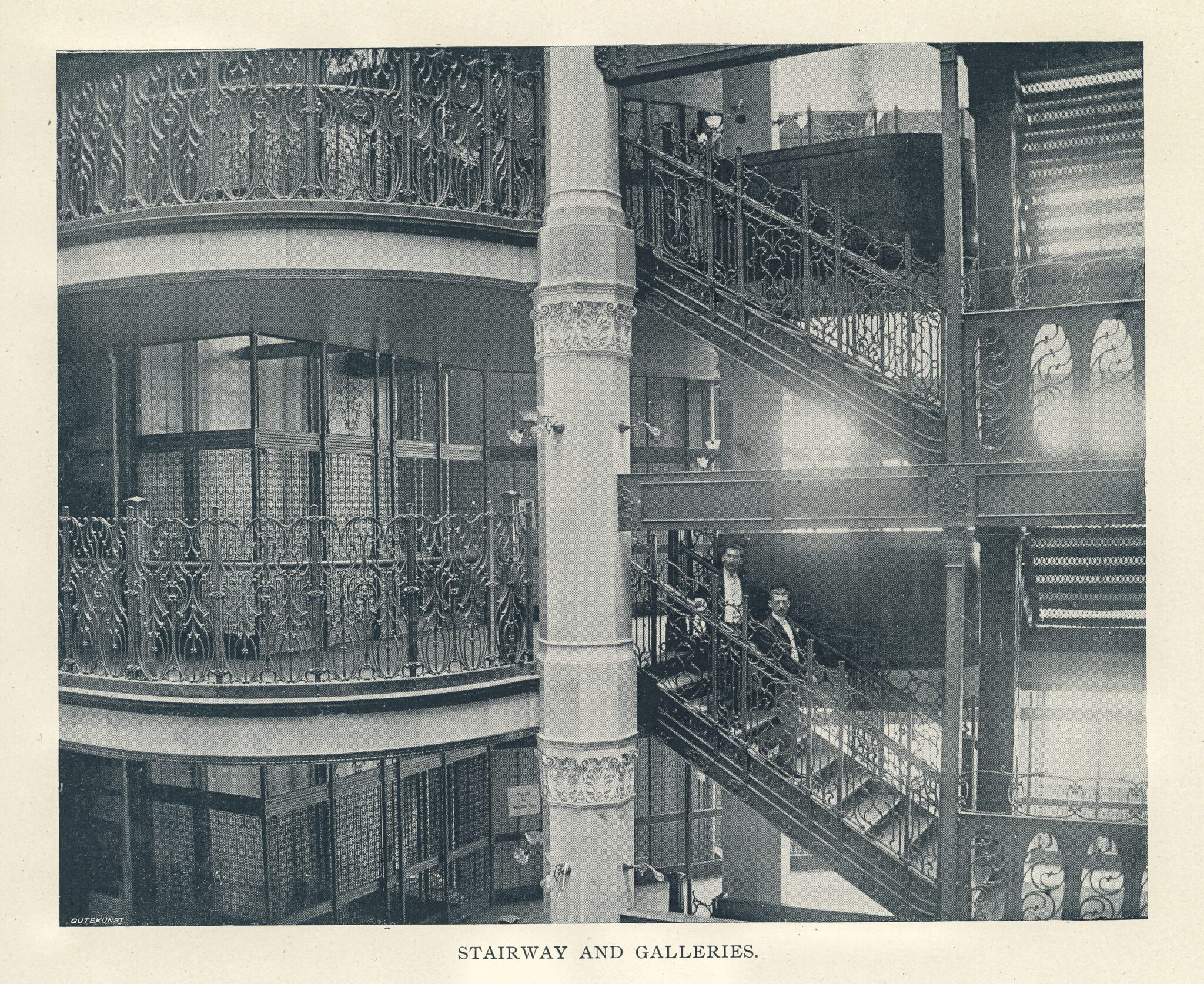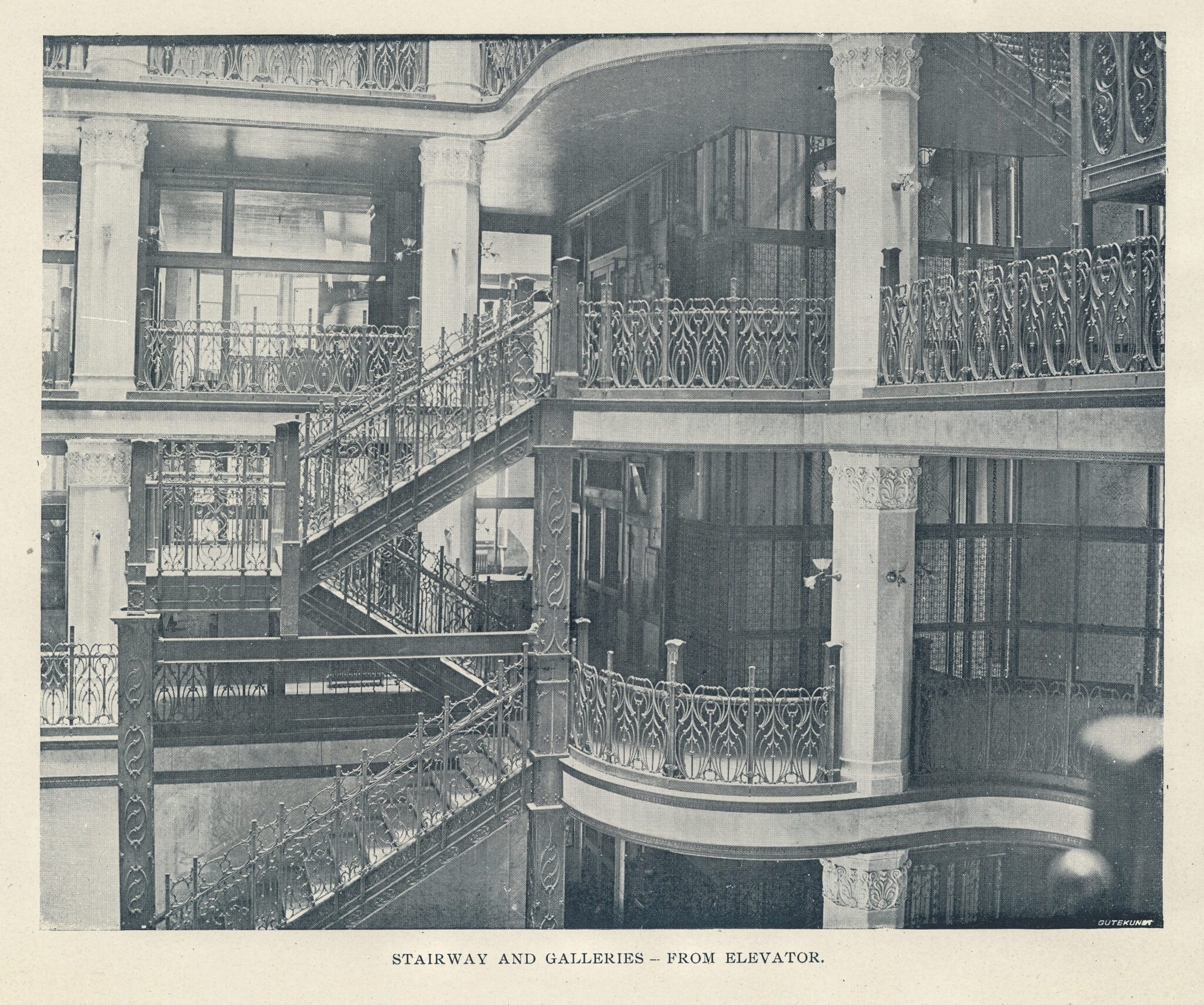 the ornamental iron was designed by john root and executed by the winslow brothers. the article states it was “hand wrought.” i cannot recall if my period winslow catalogs mention this. burnam and root’s kansas city board of trade (also demolished) was adorned with both cast and wrought iron.