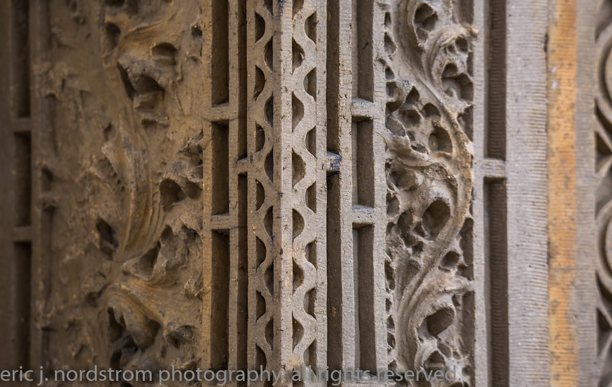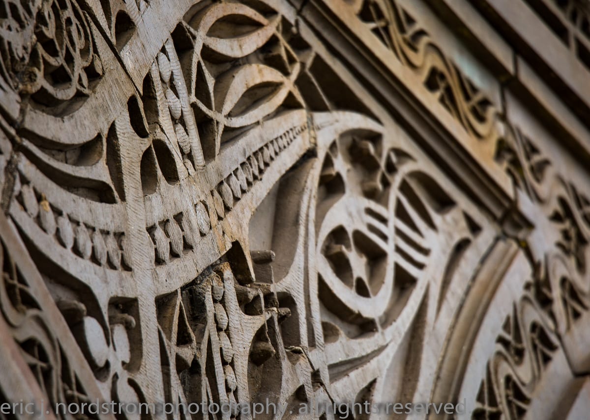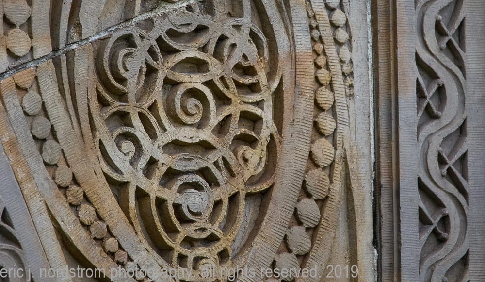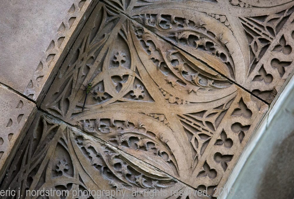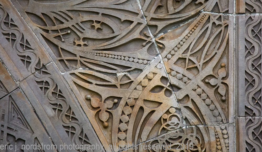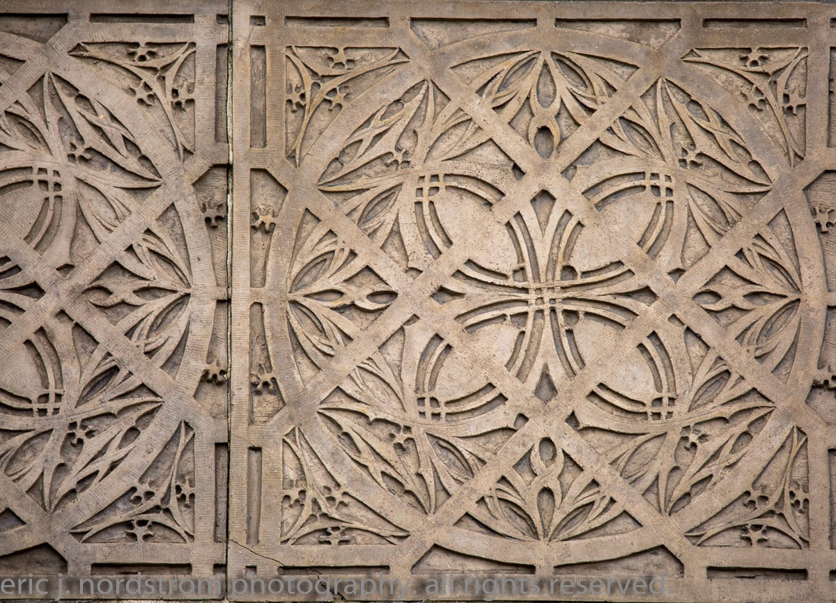 having trained as a scientist years ago has instilled upon me a relentless inclination to take things apart – study them intensely in isolation – then painstakingly reconstruct them to gain a better understanding of the system with all of its working parts. i used that method the other day when documenting the reconstructed chicago stock exchange building (1895) freestanding terra cotta entrance arch that was taken apart and carted off into storage during the building’s untimely demise in 1972. it was a great exercise to identify and document each and every sullivan-designed design used in the creation of a heavily ornamented arch bursting at the seams with an integration of organic energy that overwhelms the mind’s eye. it’s hard to look away.