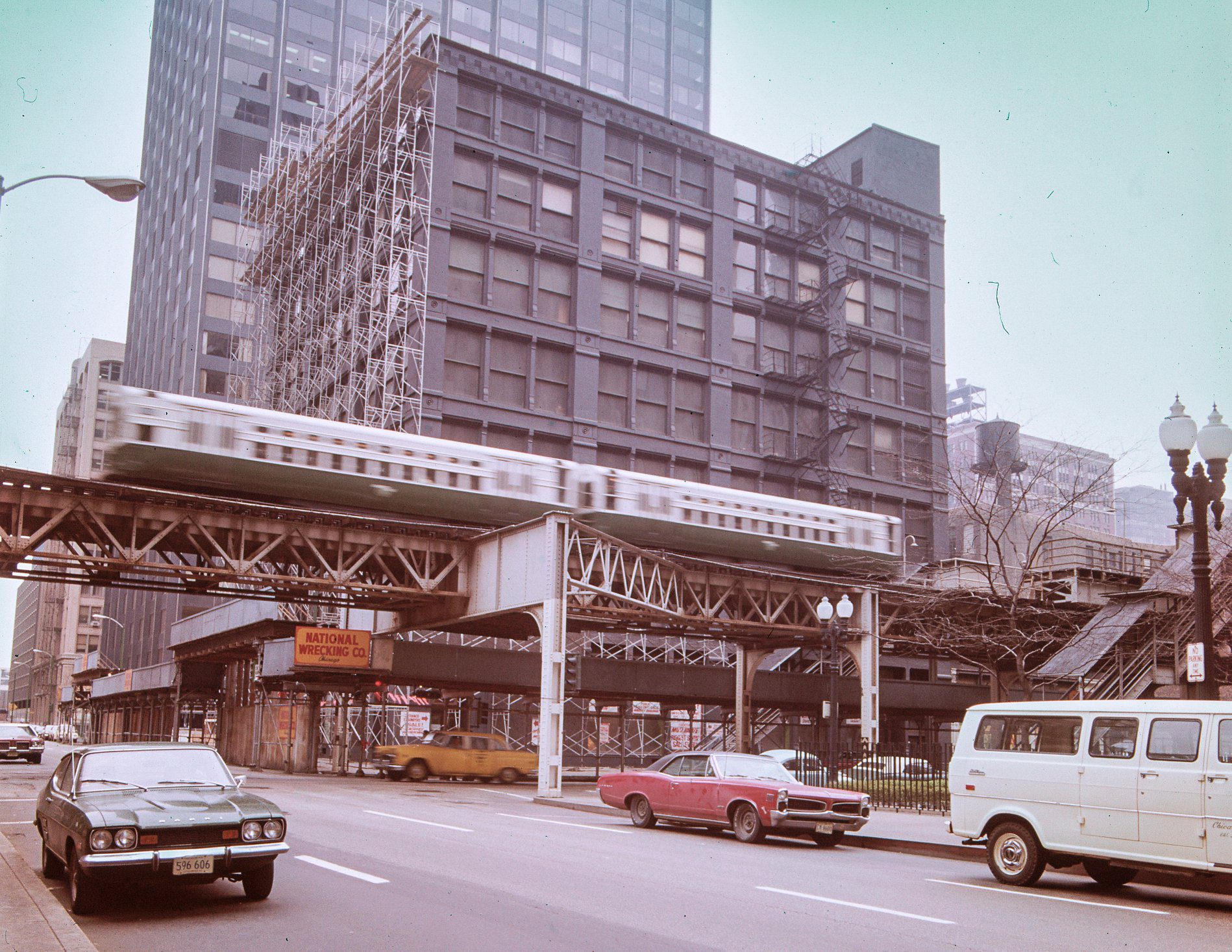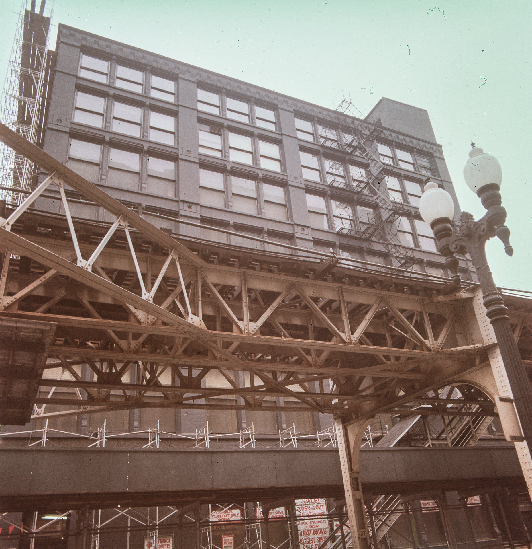 john vinci kodachrome slides of william le baron’s leiter one building (1879) shortly before its demolition. the 7-story skeleton-frame building (supported by cast iron columns) is recognized for its contribution towards the development of skeleton construction, which was further refined in jenney’s home insurance building (1885-1931).