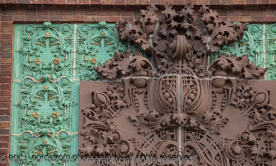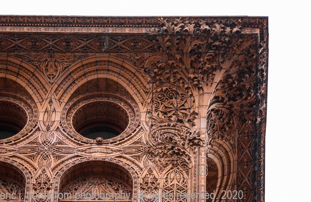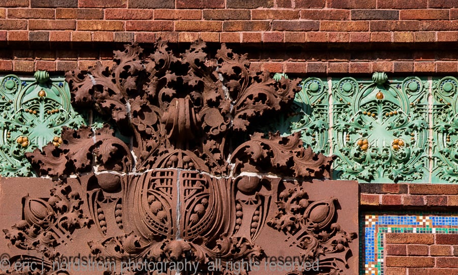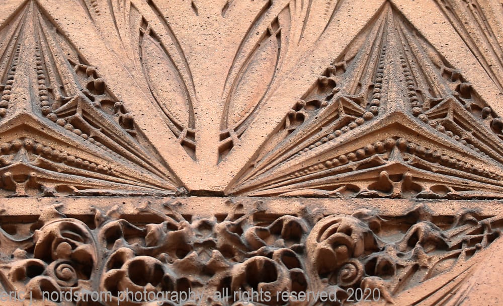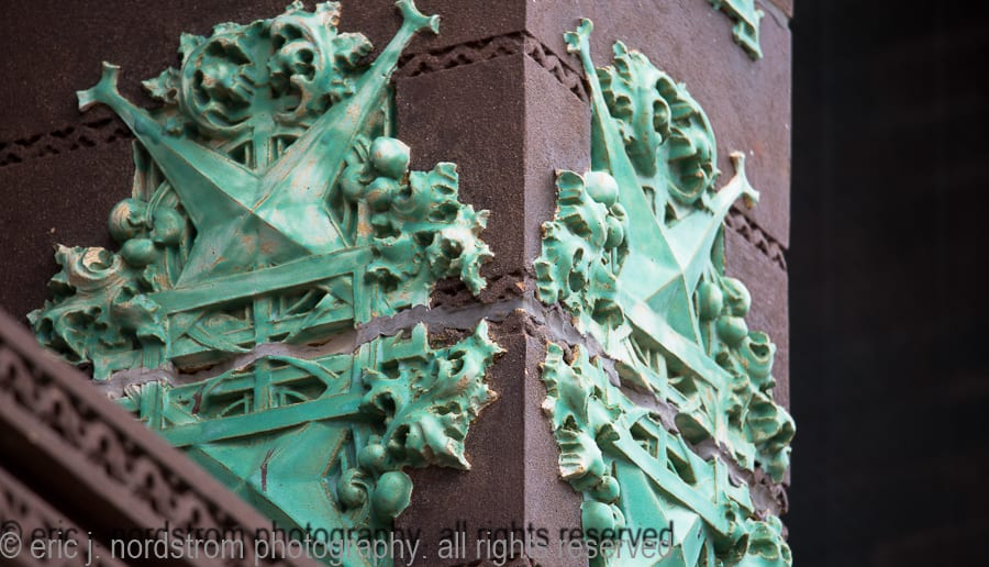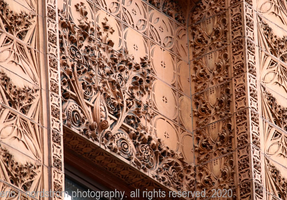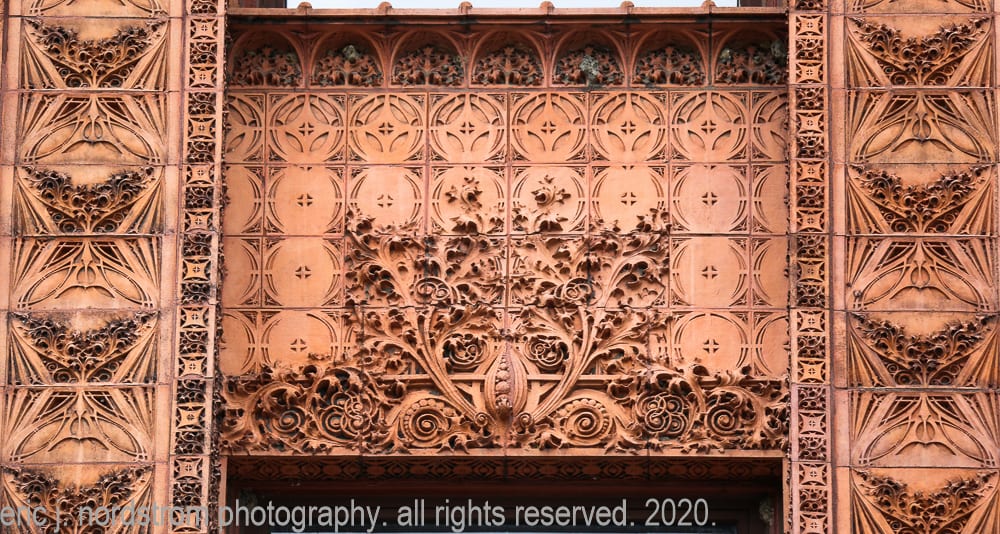 virtual repository of images representing my ongoing project photodocumenting architectural ornament designed by louis h. sullivan on and and all extant building built by the architectural firm of adler and sullivan and/or louis h. sullivan on his own. the majority of the images revolve around the richly colored polychromed ornament he created while practicing alone – towards the end of his career/life, with nearly all of it modeled by frequent collaborator kristian schneider for the american terra cotta company, chicago, ills. new images will be added or included in future posts as i visit or revisit his buildings.