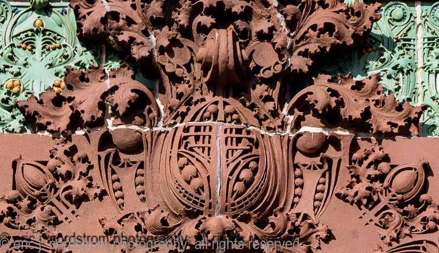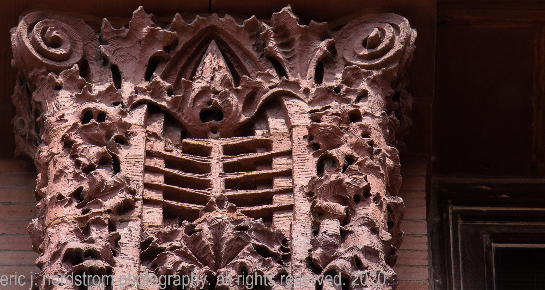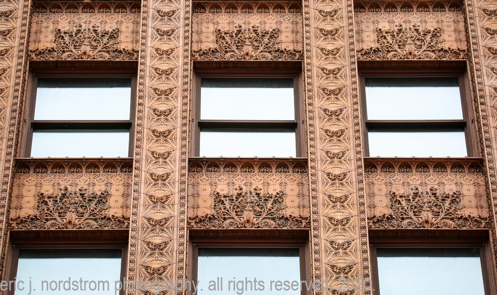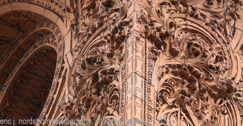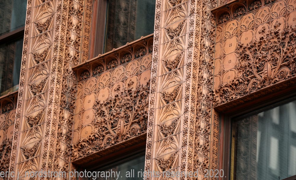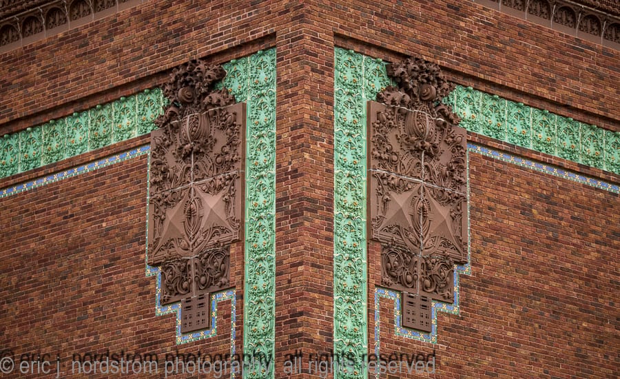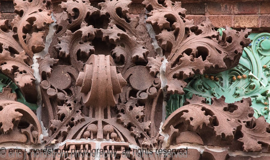 virtual repository of images representing my ongoing project photodocumenting architectural ornament designed by louis h. sullivan on and and all extant building built by the architectural firm of adler and sullivan and/or louis h. sullivan on his own. the majority of the images revolve around the richly colored polychromed ornament he created while practicing alone – towards the end of his career/life, with nearly all of it modeled by frequent collaborator kristian schneider for the american terra cotta company, chicago, ills. new images will be added or included in future posts as i visit or revisit his buildings.