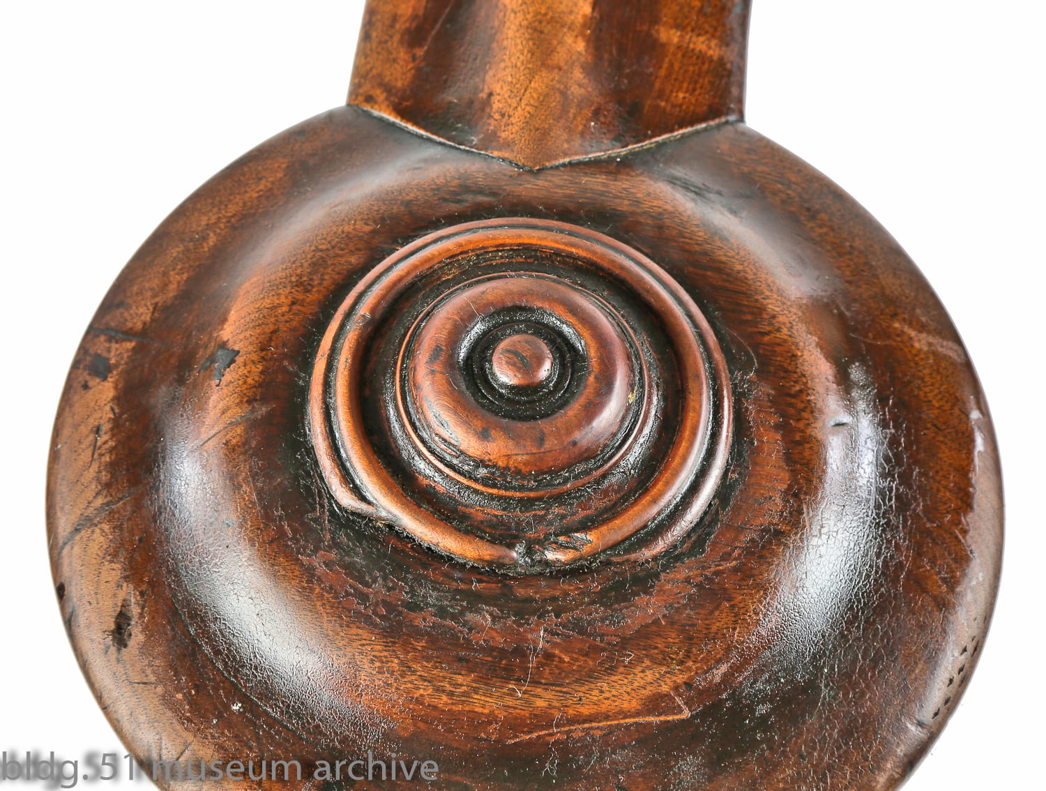 an example of a finely turned and grooved sold walnut spindle with protruding tenon.