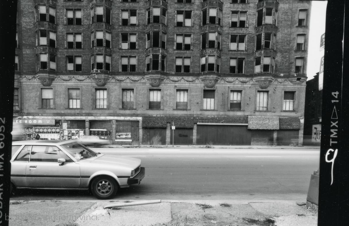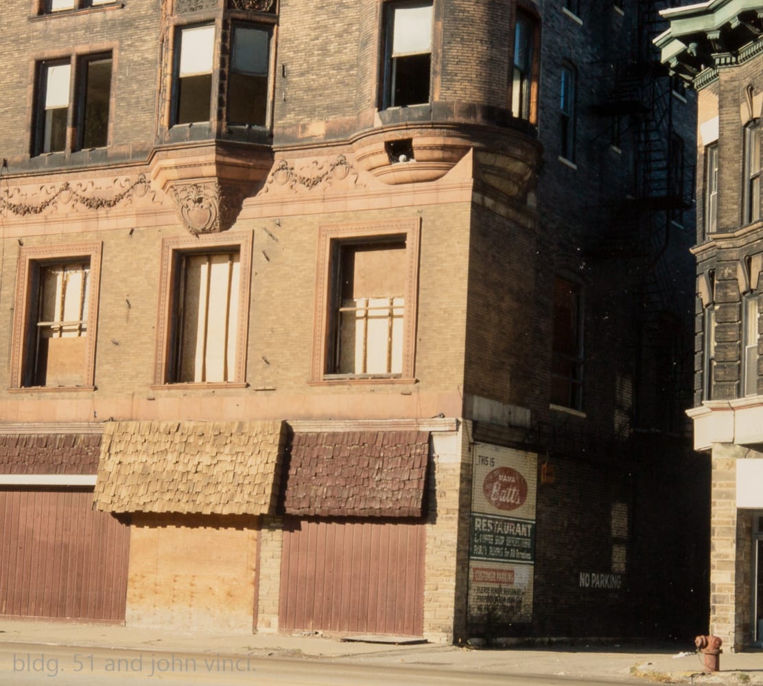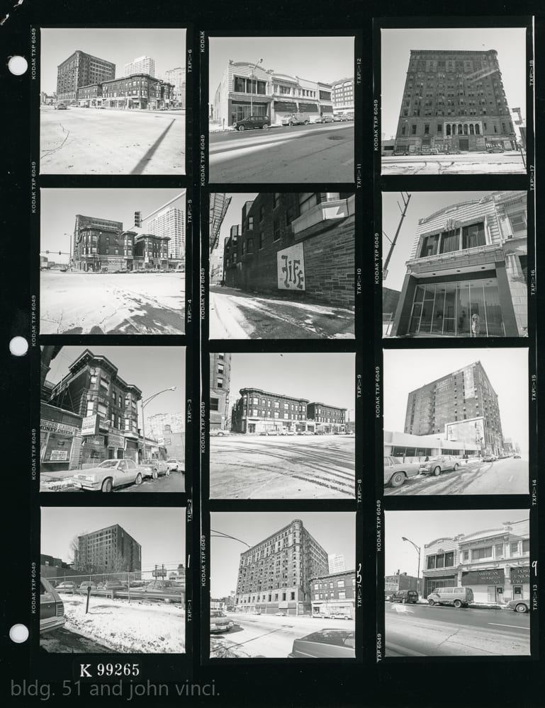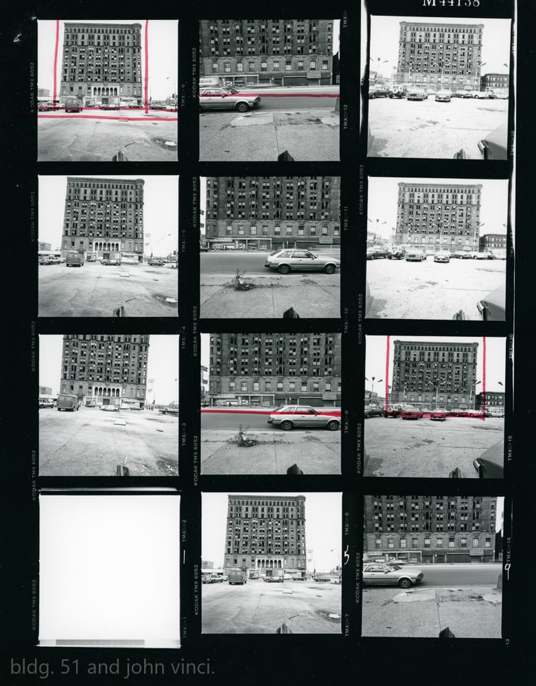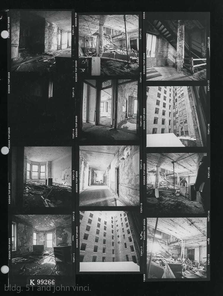 note on images: i’m currently editing several images/negatives (taken by john vinci) of the hotel and surrounding neighborhood from a pile of contact sheets i recently found in the jv archive. the images here haven’t been edited, but are still informative nonetheless.