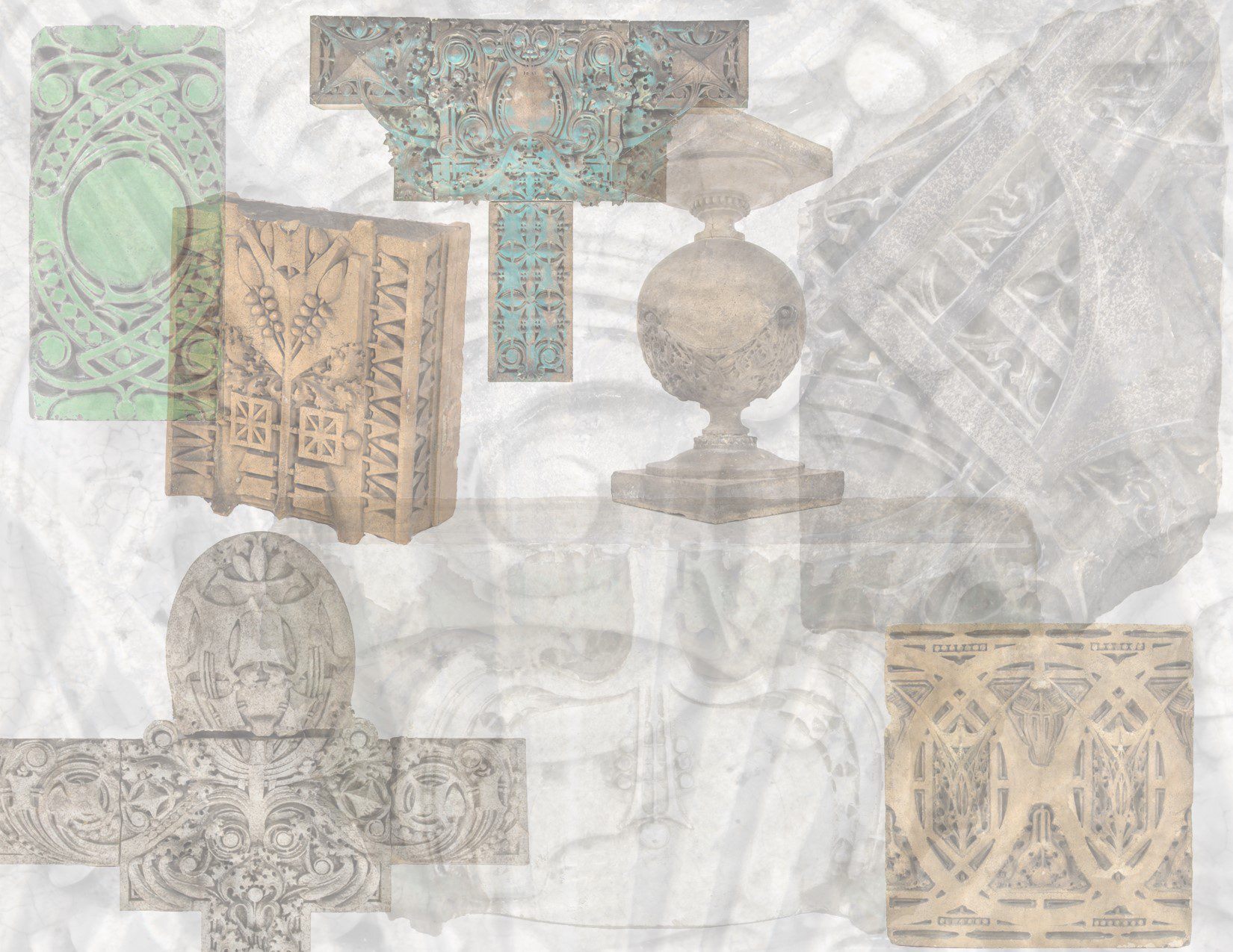 URBAN REMAINS AND BLDG. 51 MUSEUM COLLECTION ACQUIRED TERRA COTTA ORNAMENT FROM WALTER BAILEY-DESIGNED KNIGHTS OF PYTHIAS BUILDING