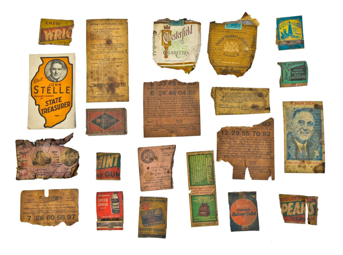 forgotten objects and ephemera found hidden in the crawlspaces, attics, plenums and basements of five depression-era chicago theaters. my “lost and found” project of documenting and discovering what tradesmen and theatergoers left behind or discarded over the decades lasted nearly three years.