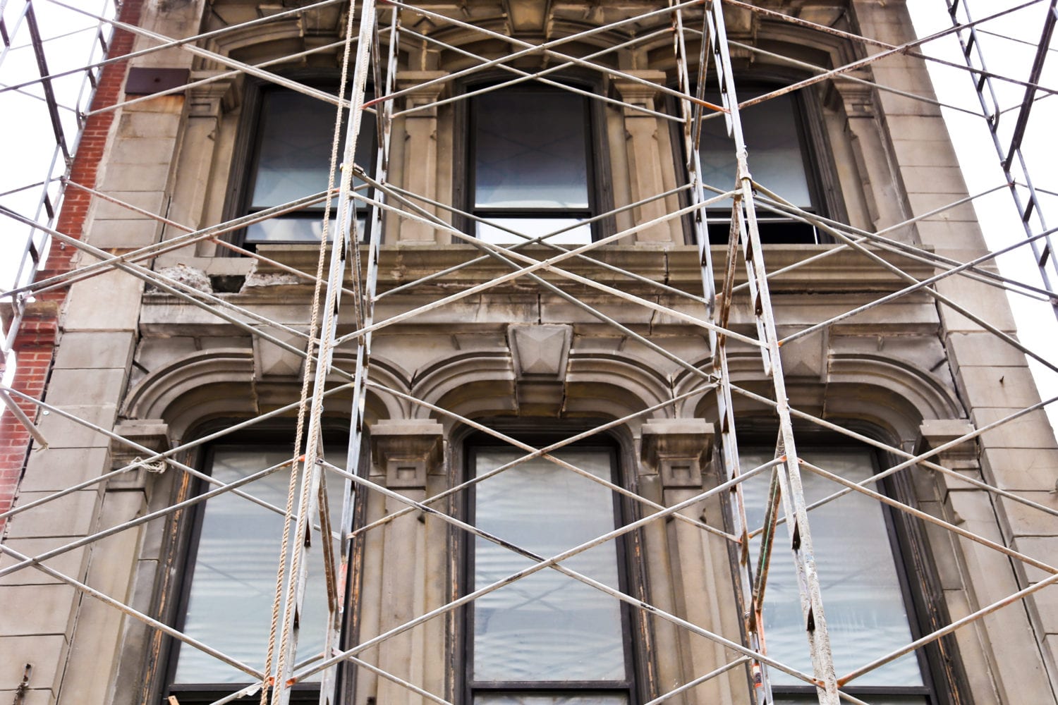 the destruction last year of the osborne & adams building (erected in 1872) remains a deeply upsetting affair, and one i remember each time i walk past the three gargantuan keystones housed in the bldg. 51 museum collection. the exterior architectural elements were rescued from the loft building’s “cast stone” facade as it was pulled apart behind the cloak of an extensive web of scaffolding.