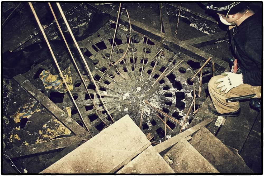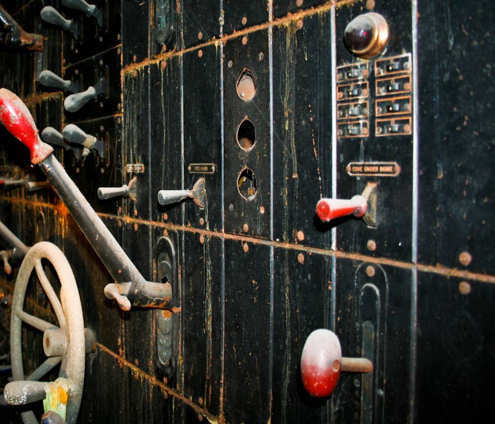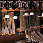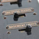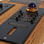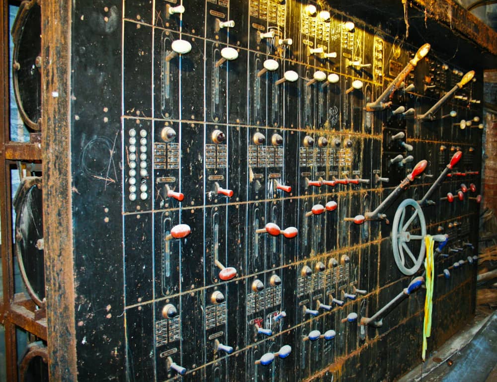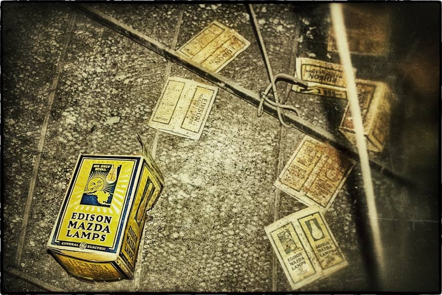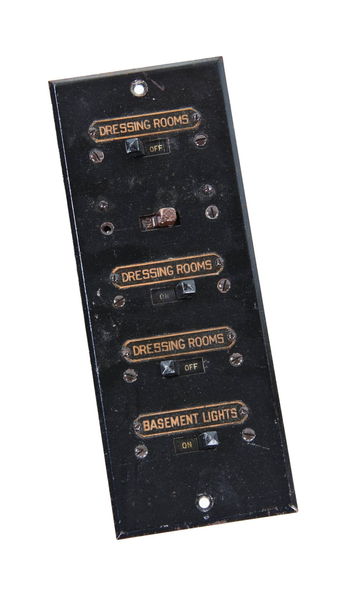 the non-extant lawndale (opened as the new yiddish lawndale theater) at 4015 w. roosevelt, salvaged nearly 8 years ago, was an exemplary site for rescuing antiquated lighting equipment housed near the east side of the stage within the cavernous atmospheric theater (also built in 1927). the lawndale was a 2,200 seat venue renamed the rena theater in 1948. it served as a yiddish theater for a time, and finally closed in 1963, only to be converted into a church before its eventual demise. the massive and remarkably intact “major” lighting control panel was partially salvaged in an attempt to represent a well-preserved late 1920’s technology that existed behind-the-scenes while completely transforming the ambiance of the room for theater-goers. the heavily integrated upright panel contained a grid-like configuration of multiple black enameled steel metal plates, complete with original bakelite switches corresponding to lighting in discrete parts of the building (i.e. the main ceiling, or the orchestra spots, dressing rooms, etc.). an operator controlled virtually all parts of the building from this single area, by frequently adjusting levers, cranks, switches, and so on. the panel was illuminated from above and each bay containing a collection of switches and dimmer levers would glow with multi-faceted, copper-encased indicator panel lights.