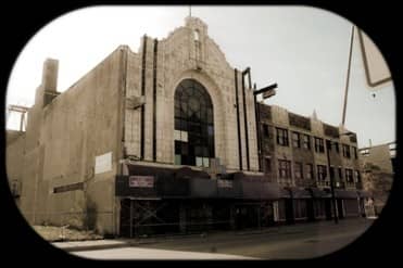 atmospheric theaters gained popularity in the 1920’s, and are distinguished as an architectural style that used theater design to extend the cinematic experience, to imaginatively transport the audience with the decor. a plain dome gave space for projections of clouds, simulating the night sky with twinkling “star lights,” and walls were decorated to appear as an exotic locale or an outdoor space. the “star light” shown below was removed from the ceiling of the nortown theater (1931) during demolition in 2007. the “pinhole” found at the bottom of the inverted conical-shaped light was exposed, but painted blue to conceal it, along with all the others arranged to make the constellation. the fixture itself was essentially a condulet box containing a socket used in conjunction with “blinker” incandescent light bulbs that had to be replaced weekly.