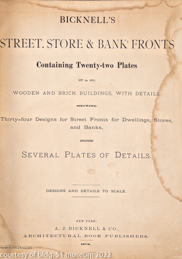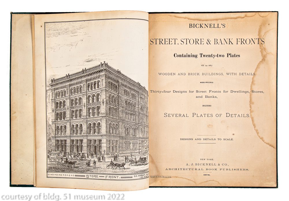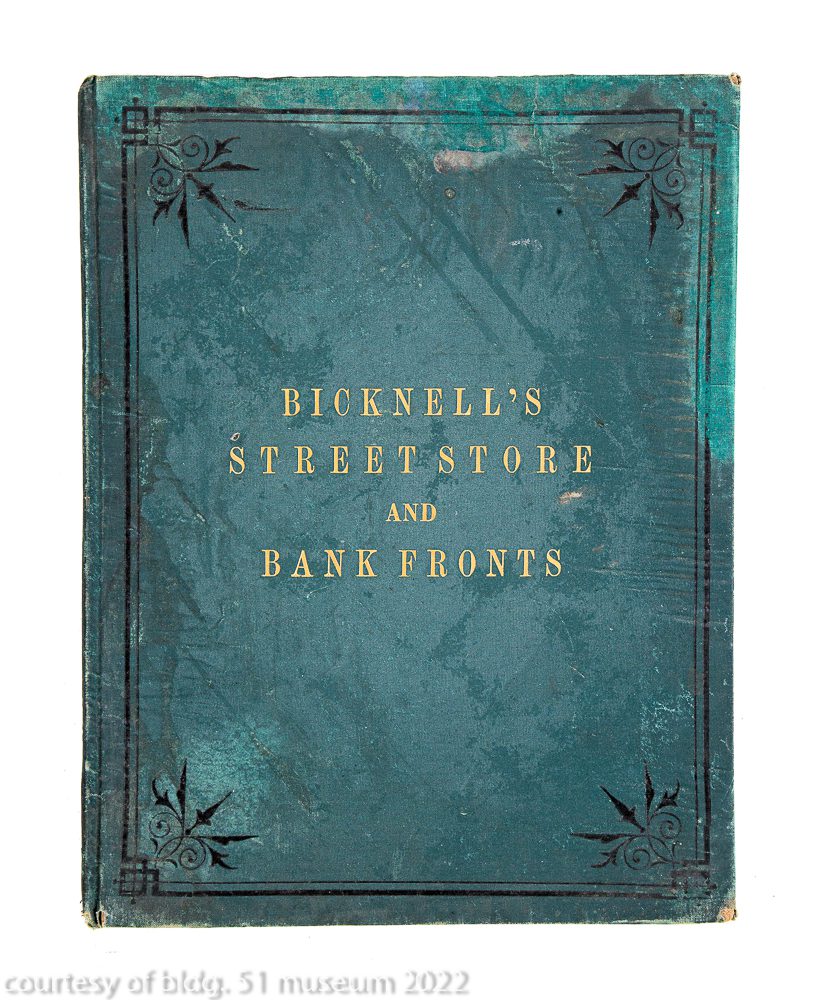 bicknell, a.j. bicknell’s street, store and bank fronts. new york: a.j. bicknell, 1878. quarto, original green cloth.