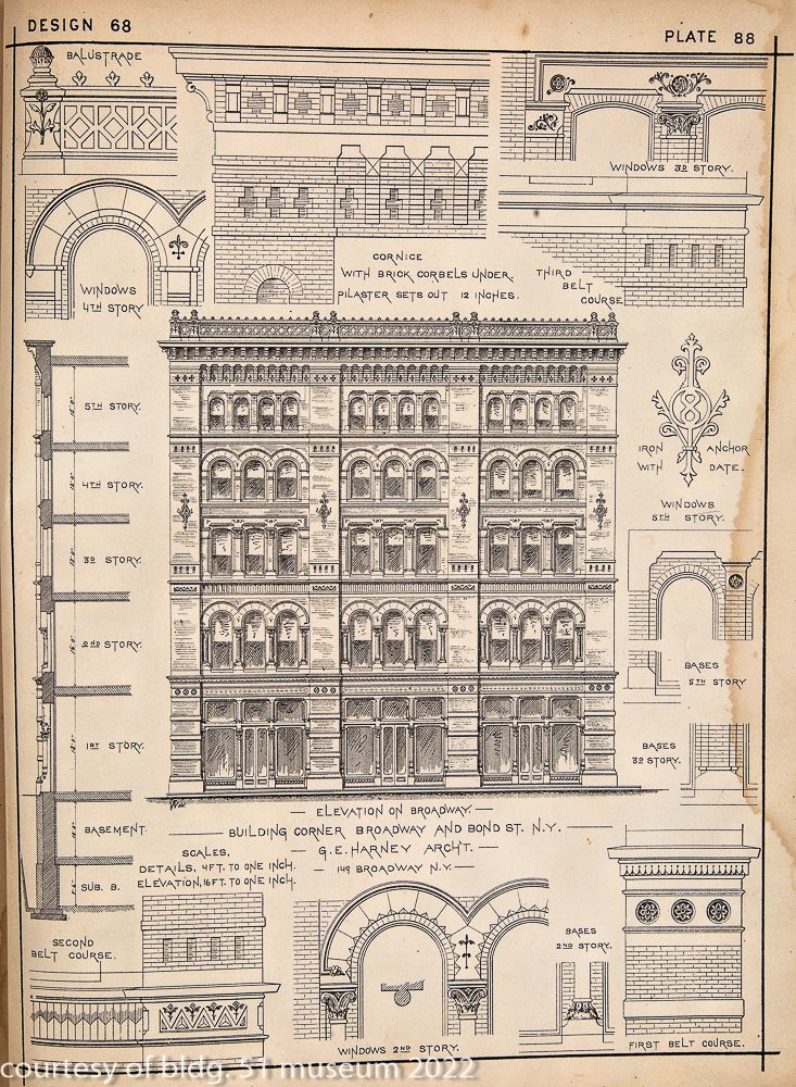first edition, with 23 lithographed plates of architectural drawings and designs for building facades in new york.