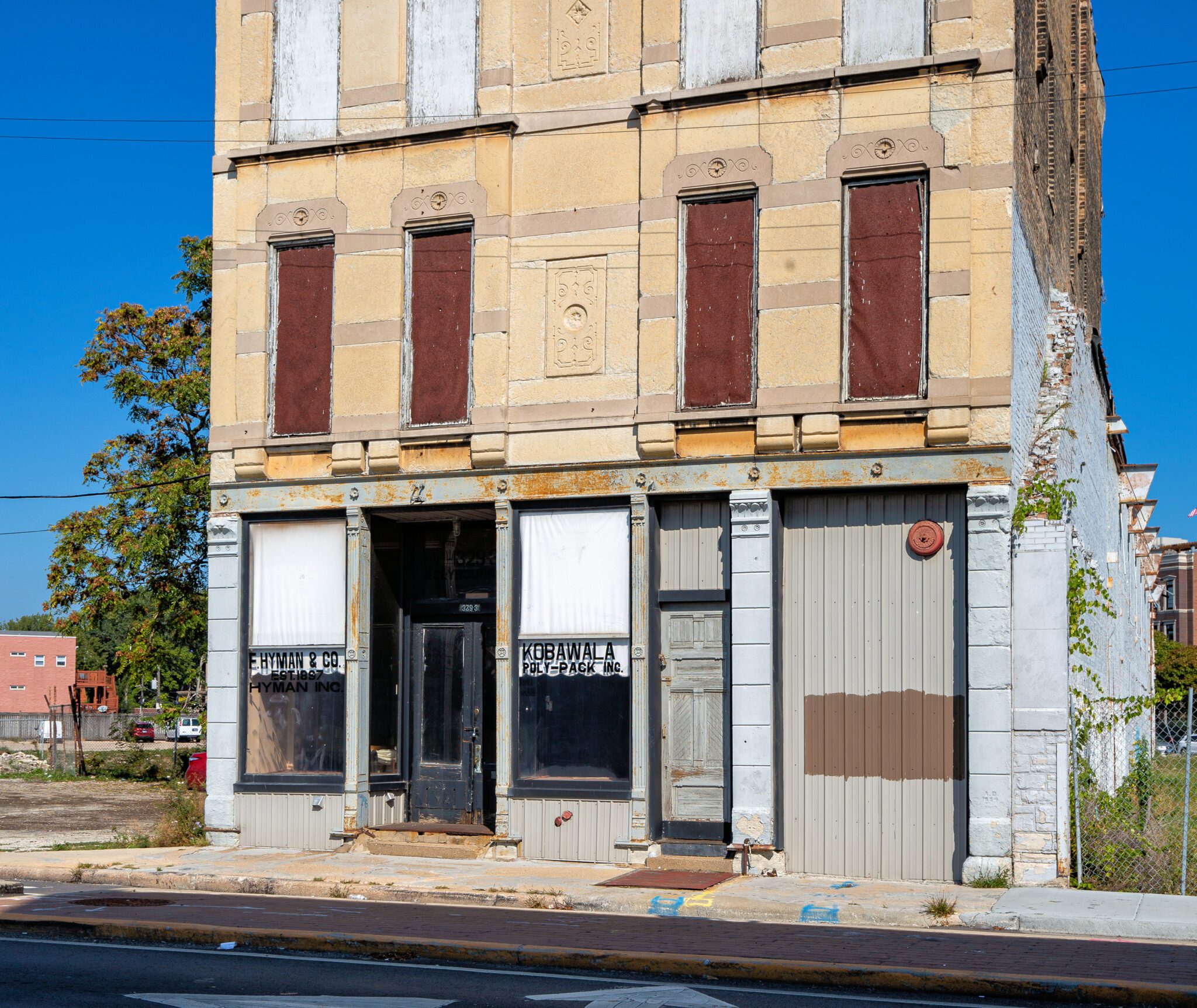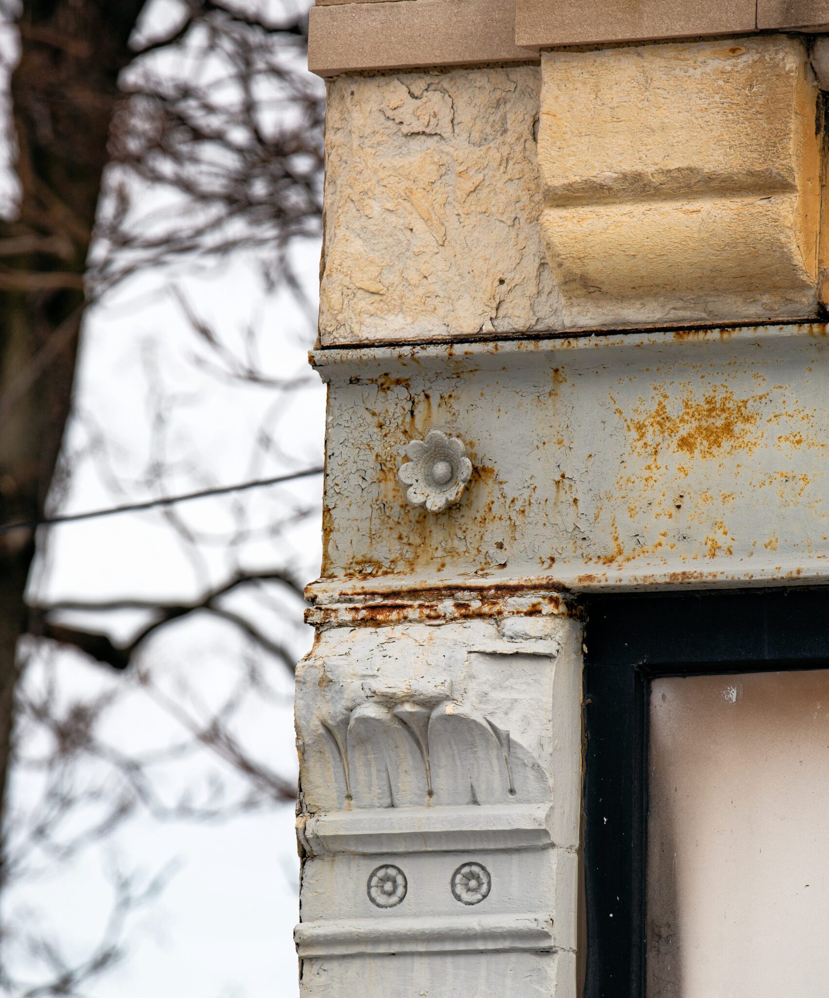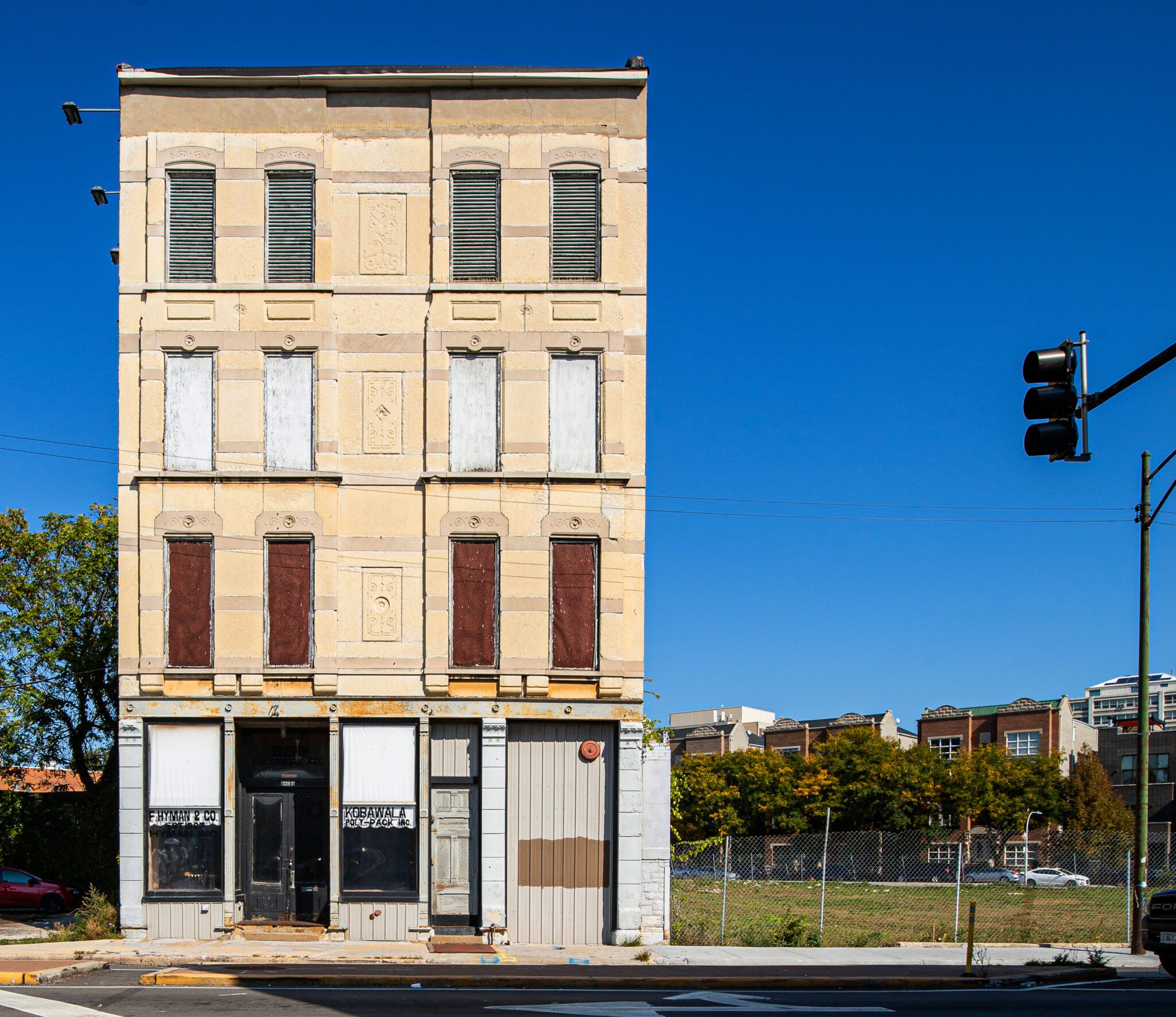 the exterior remains laregly intact, with orginal ornamental iron storefront and oversized chamfered paneled wood exterior door leading to upper floors. the metal or wood cornice was removed long ago. will provide updates when time permits, including interior images.